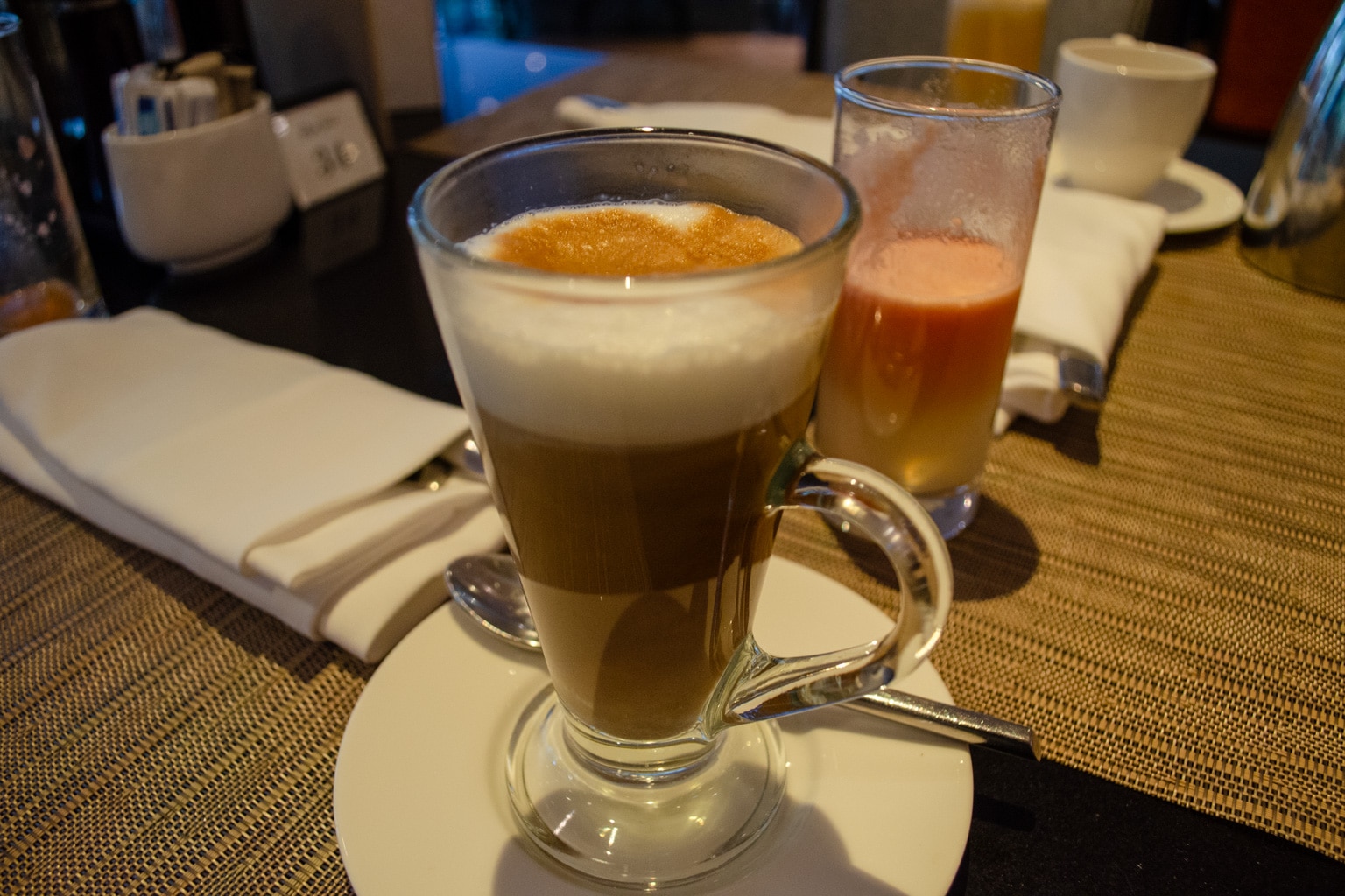 We were escorted to the elevators and up to the lounge, and then were promptly offered a selection of welcome beverages. We opted for the Thai iced tea this time around, as memories from the night prior lead us away from the offer of sparkling wine.