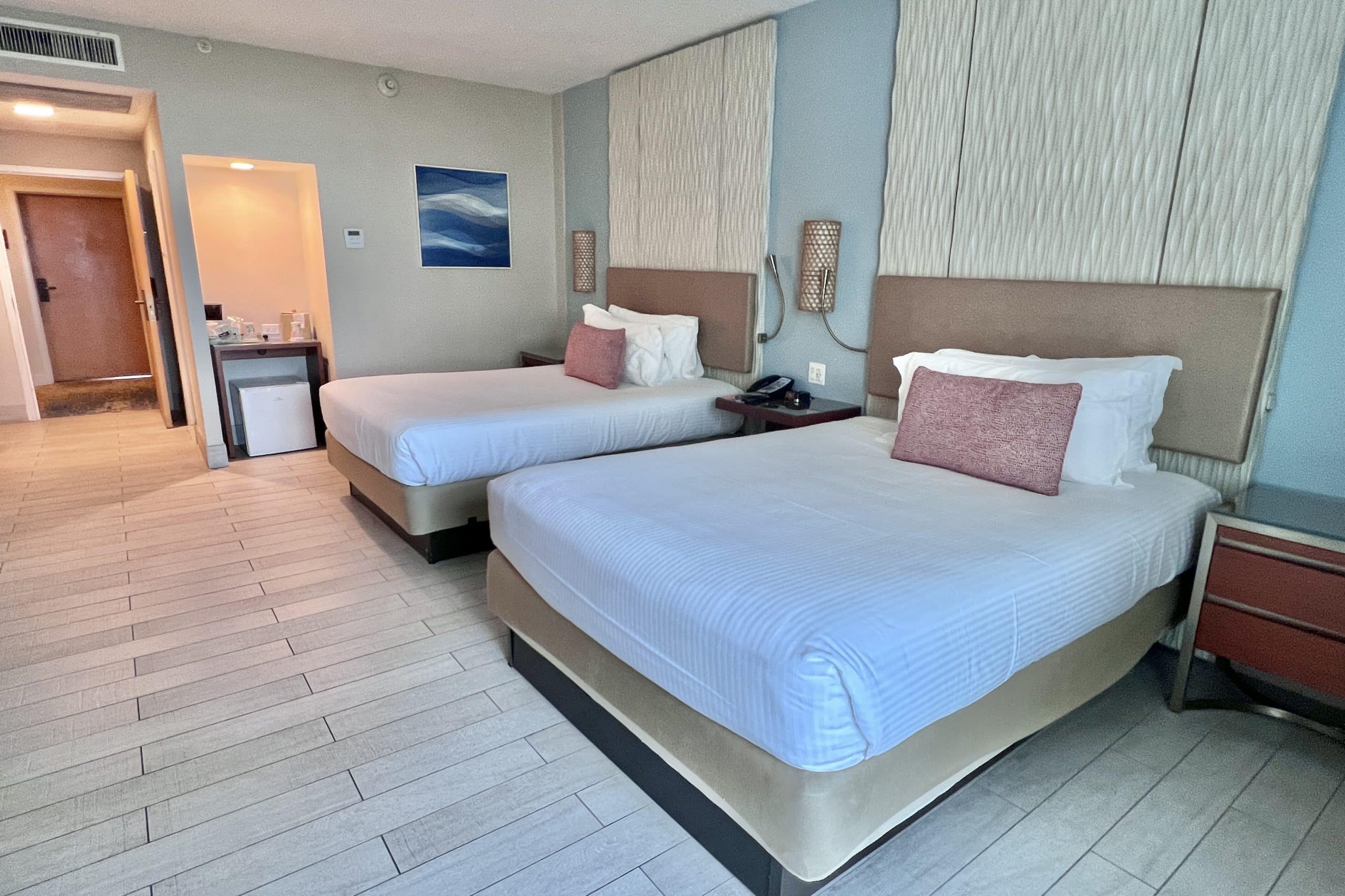 The Coral is the the oldest but most economical option. The rooms were renovated in 2017, but are still pretty bare-bones with respect to in-room amenities. There are some visible signs of age around the building.