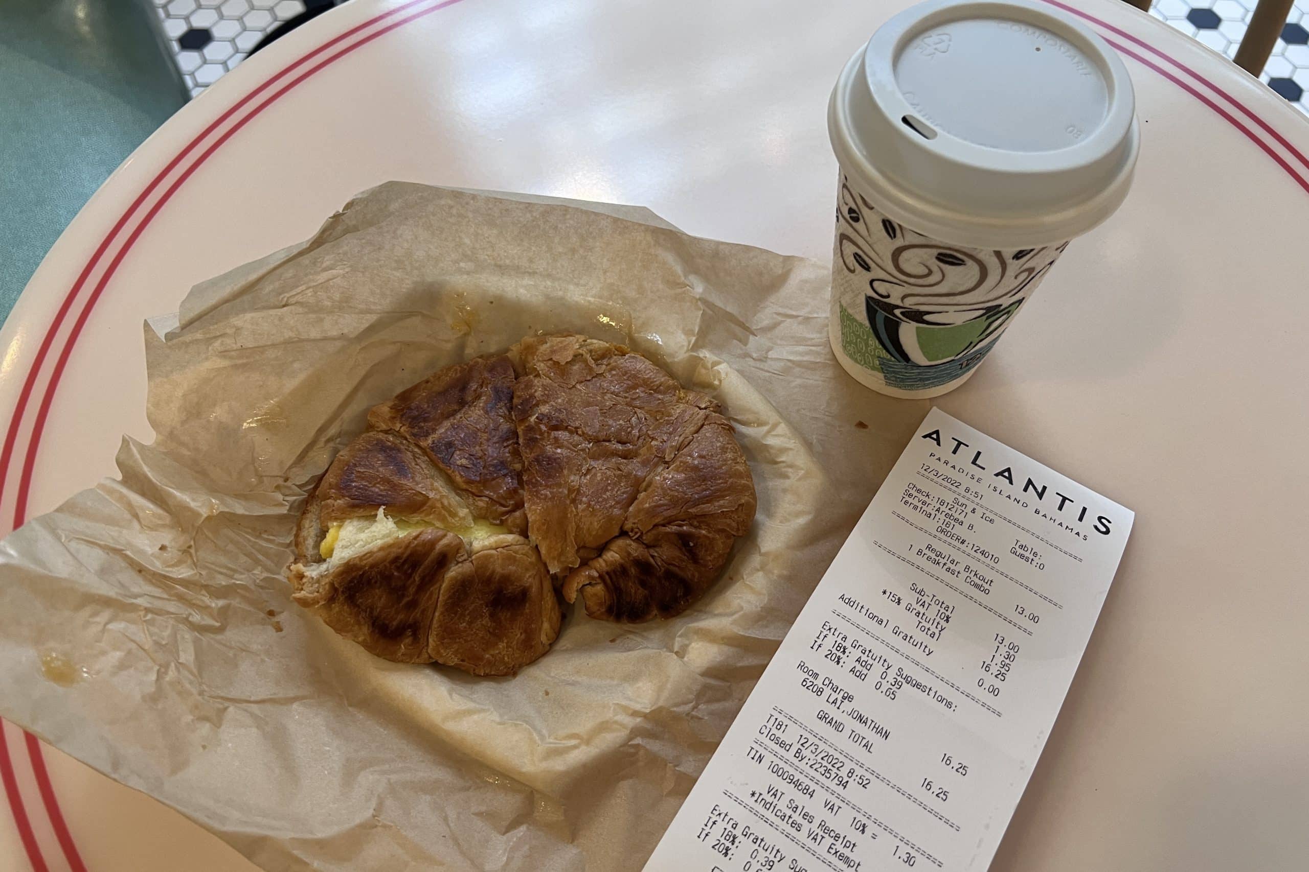 If you prefer something cheaper, you can buy a breakfast sandwich and coffee combo at the Sun & Ice Café at The Coral for $13 (USD). You can have free refills on coffee till 11am every morning.