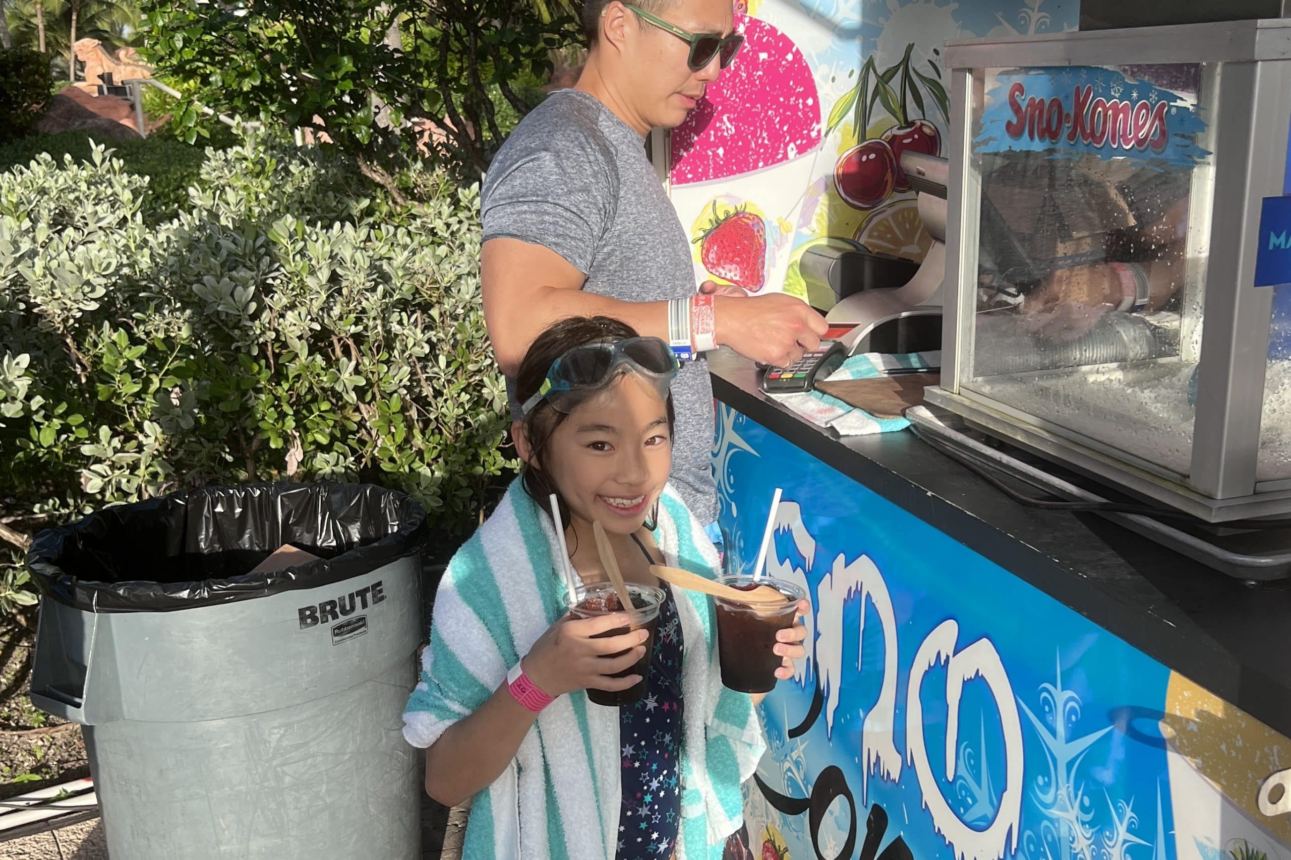 If the kids are in need for a cold snack, snow cones are available for $7 (USD) each. They are a decent size and the staff are happy to split an order into two cups for kids to share.