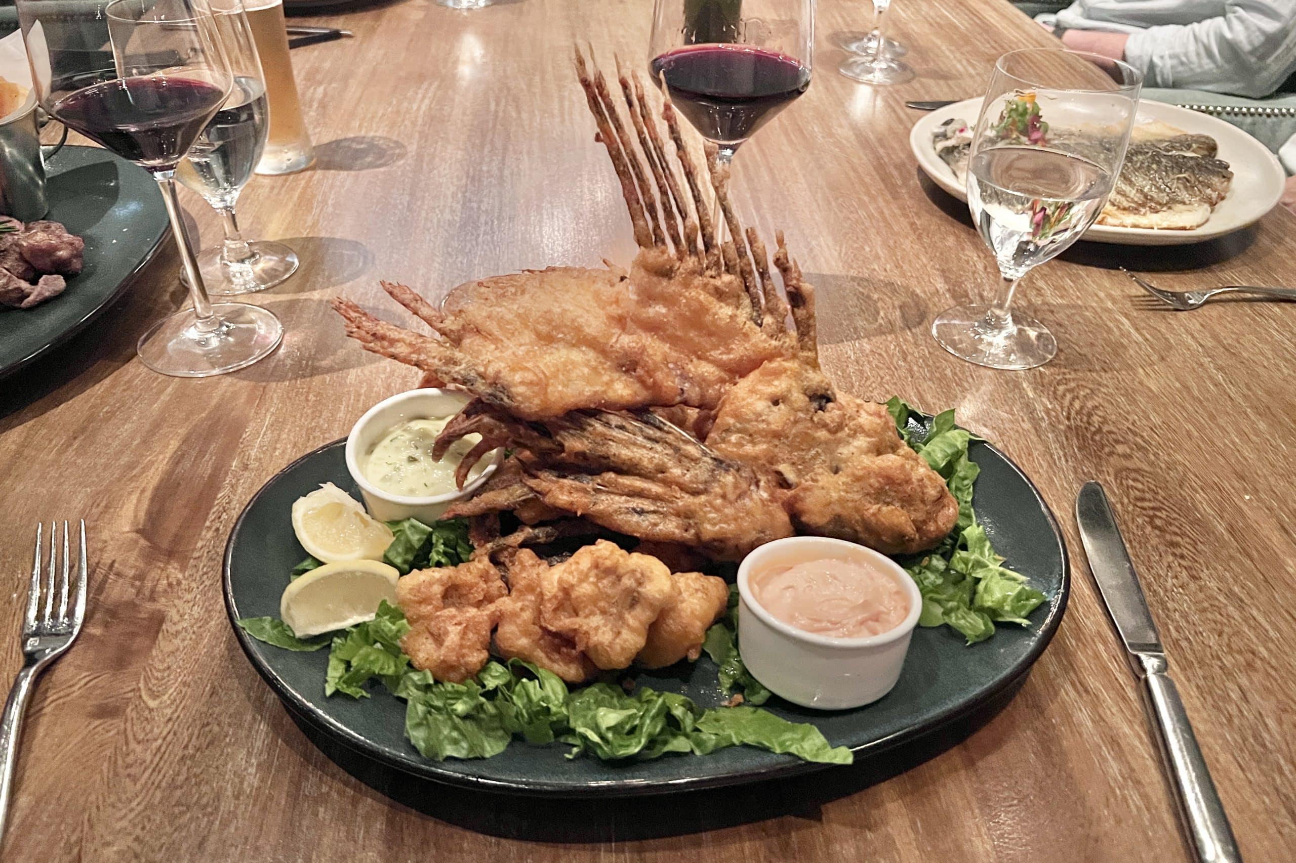 If you are looking for a good seafood sit-down meal, I’d recommend Fish by Jose Andres, located at The Cove. The fish entrées are quite large (larger than what’s specified in the menu) and can be shared between two people, which helps cut down the cost.