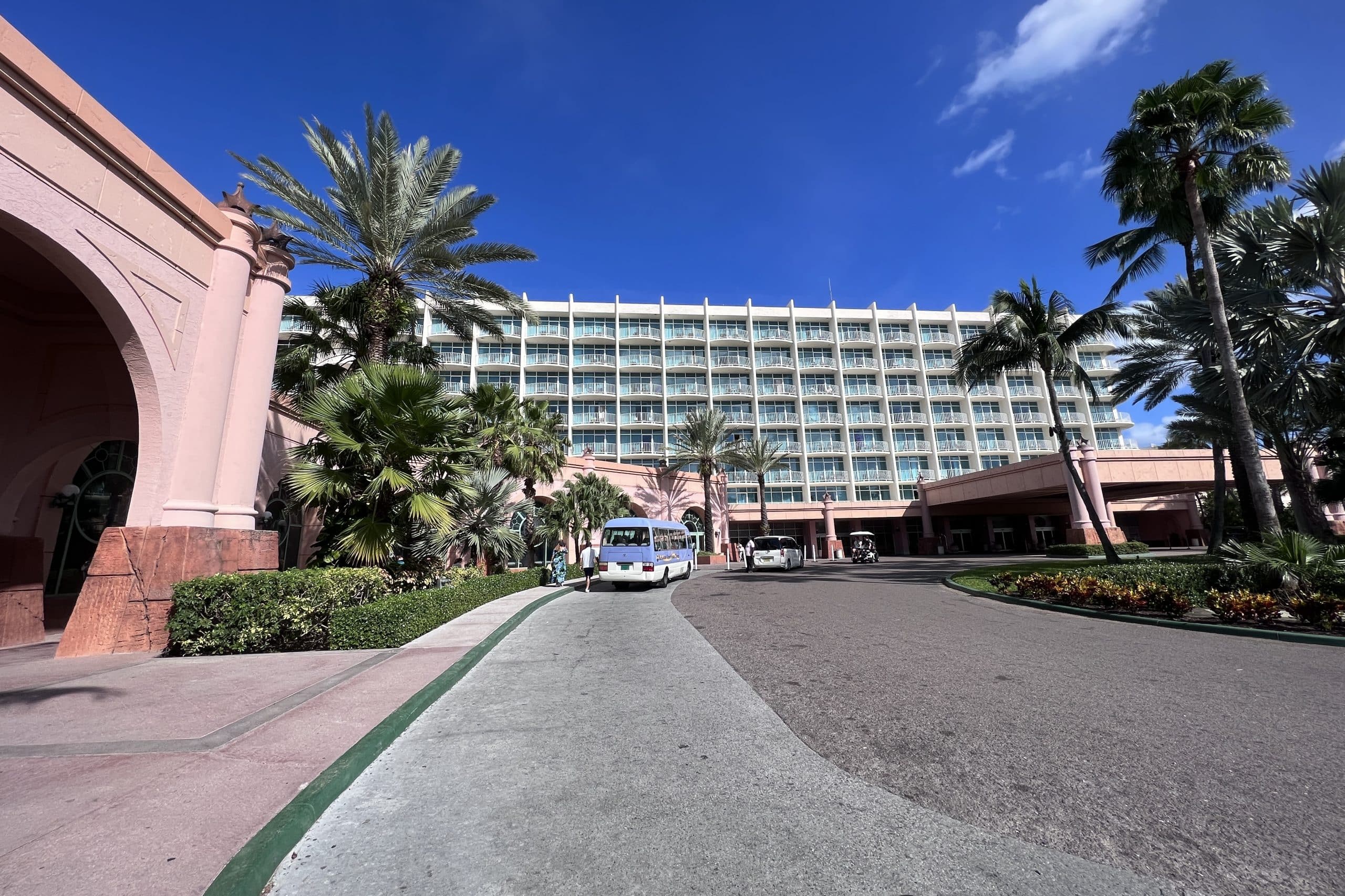 The resort is located outside of the downtown area of Nassau on Paradise Island, which is about a 25-minute drive from the airport. You can make your own arrangements to the resort, or use a paid shuttle service that can be purchased through the resort.
