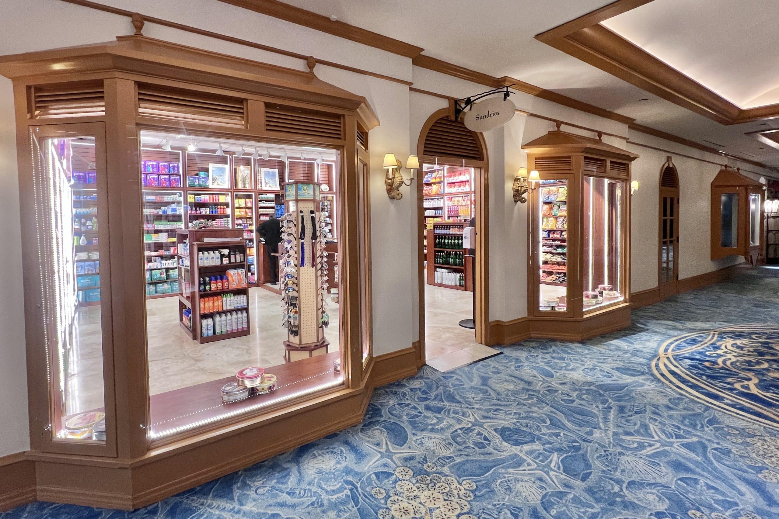 Many of the high-end shops, the casino, the spa, the gym, and the kids club are located here as well.