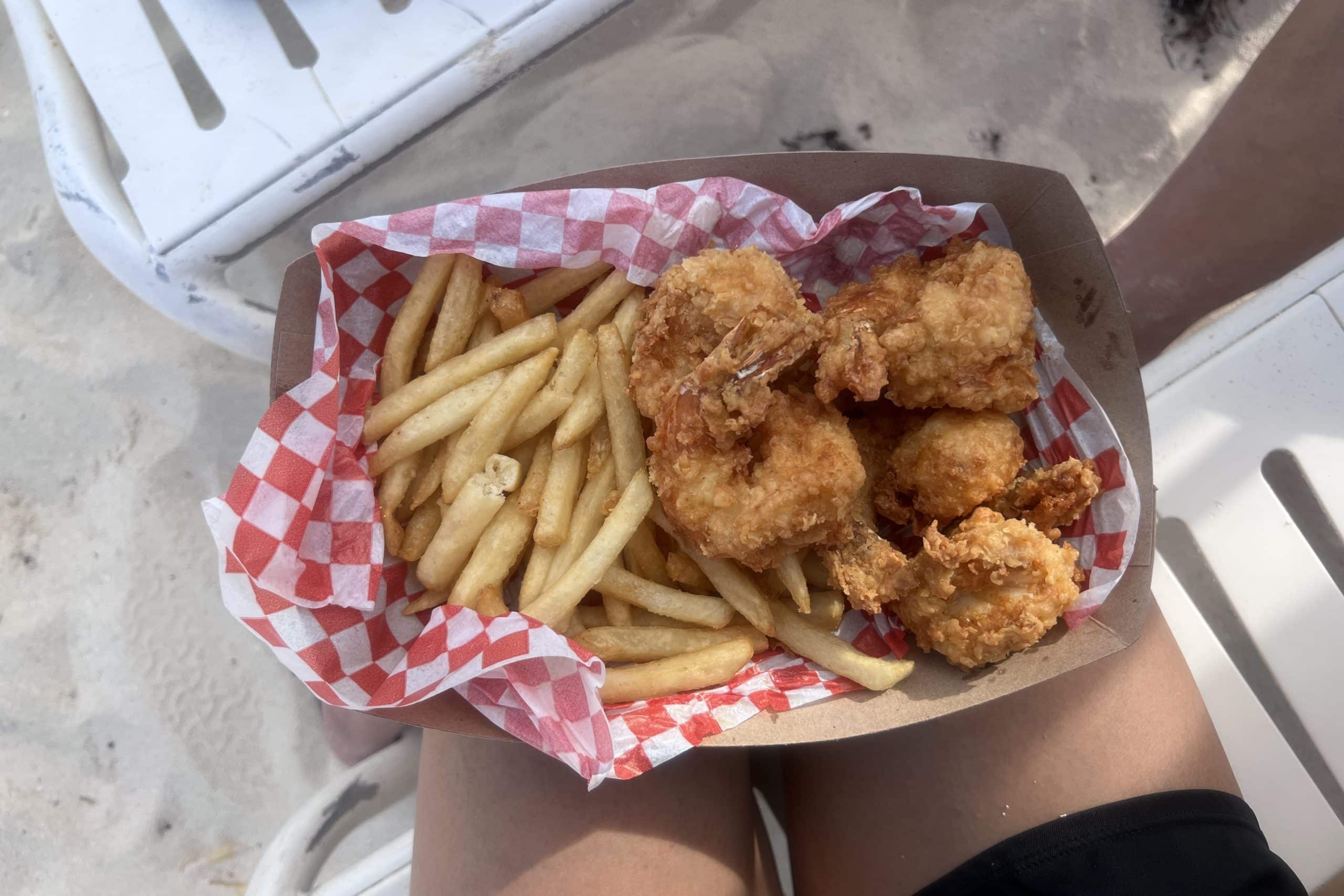 By the beach, there is a food stand called Pisces, which had different options from other places and we found to be our favourite. Here, they had coconut fried shrimp and breaded chicken cutlets that were delicious.
