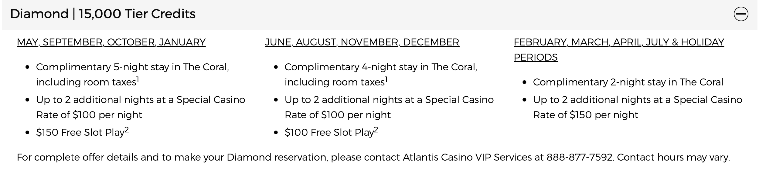 To redeem our two rooms as part of the Caesars Diamond perk, my husband and I had to call the dedicated Caesars booking line. Recall that with Diamond status, you’re entitled to a two- to five-night free stay at the Atlantis Bahamas each year.