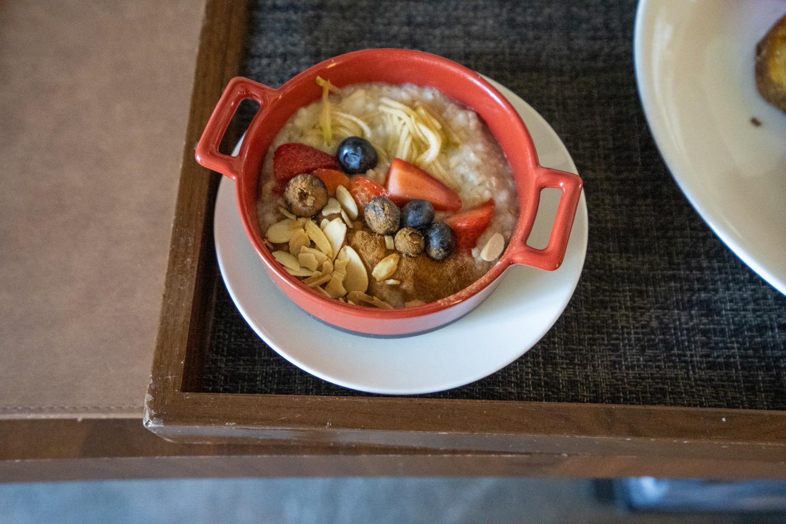I also ordered some steel-cut oatmeals with accompanying fruit and nut trimmings, as well as coffee, orange juice, and a small fruit salad.