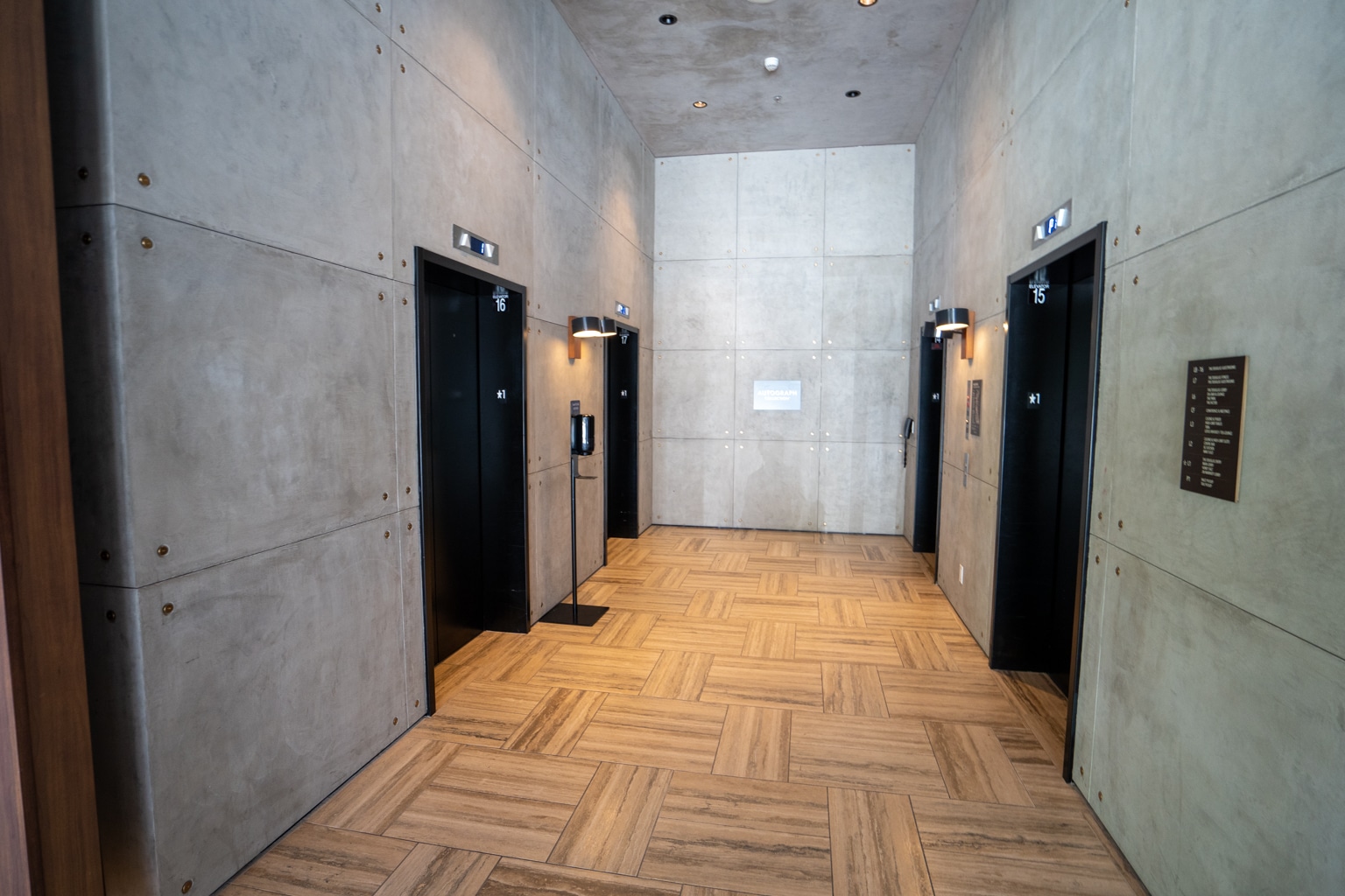 Upon arriving at the hotel through the main exterior entrance, we took a short elevator ride to the lobby on the sixth floor.
