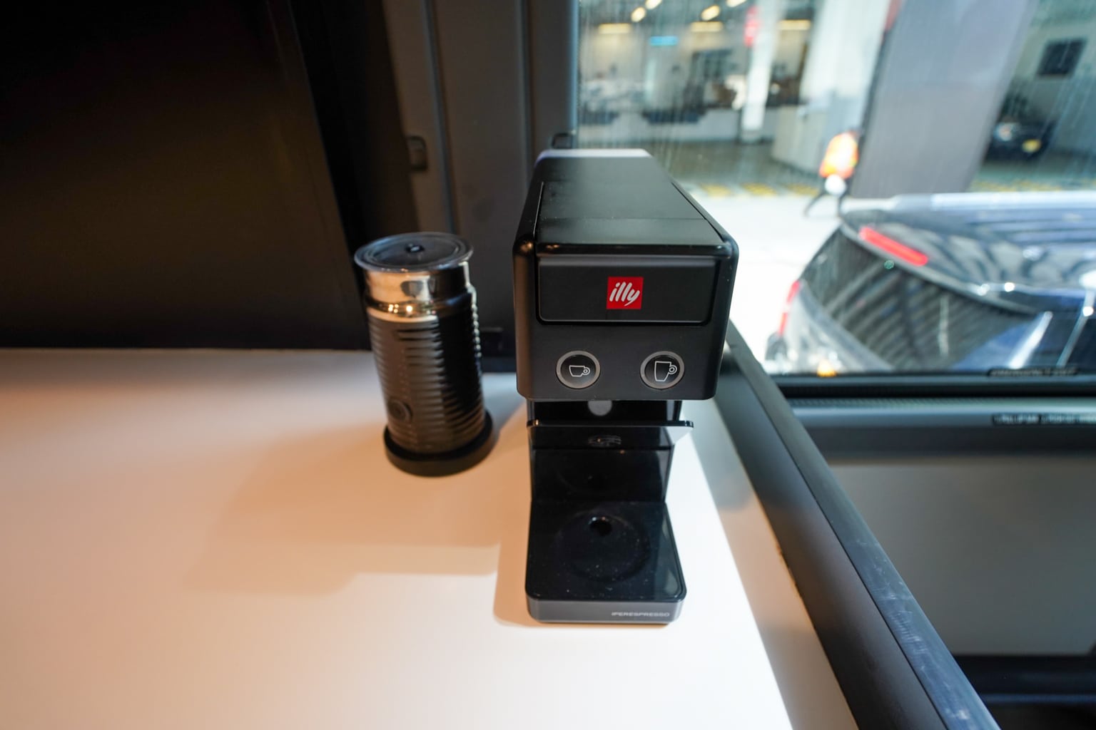I helped myself to a few snacks from the basket, including some Cheez-It crackers and a satisfying cappuccino made from the Illy espresso machine onboard in the back.