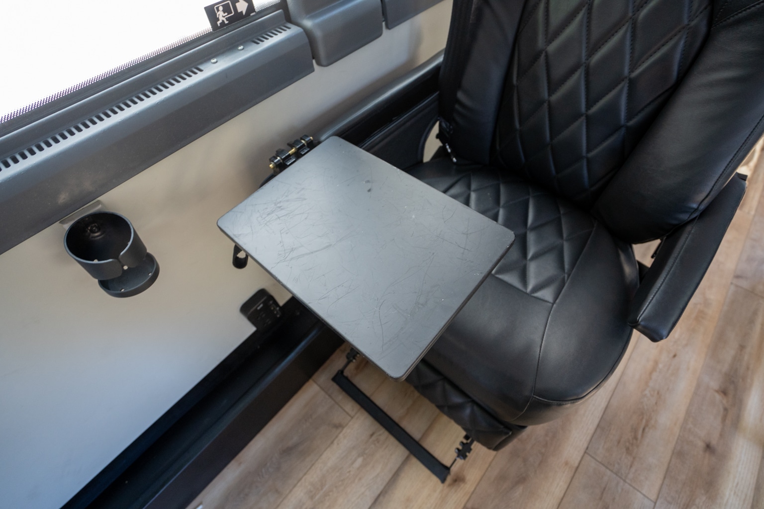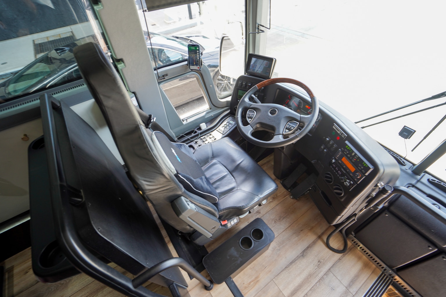 At first glance, The Jet’s leather “HoverSeats” appear no different than your average high-end bus seat. However, upon sitting down, you’ll quickly take note of its many distinguishing high-tech features.