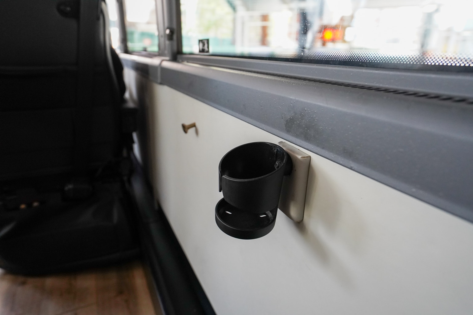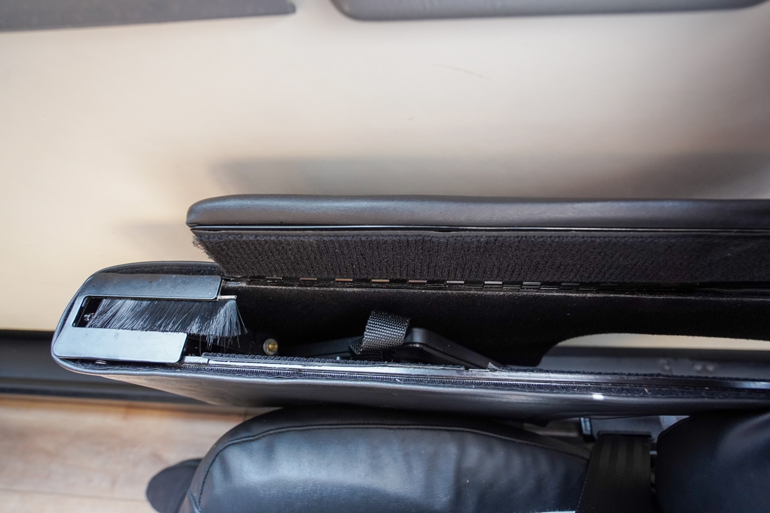 The tray table folds out from the seat’s armrest, which is large enough for a snack and drink or placing your laptop. There’s also a drink holder available by your side.
