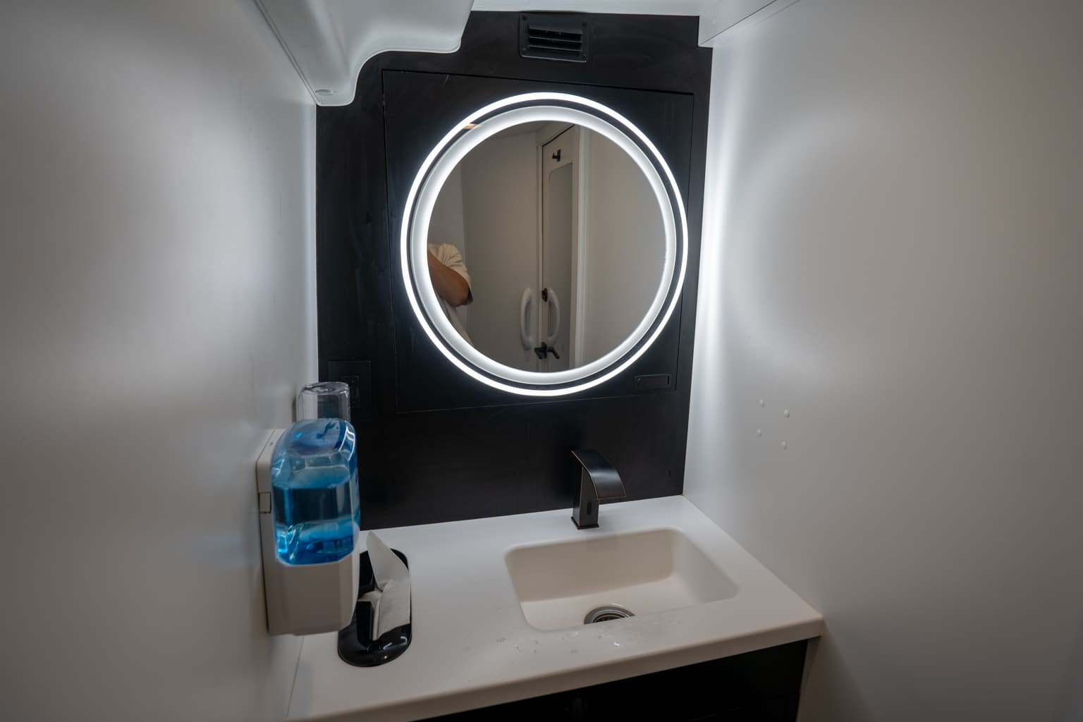 Here on The Jet, the restrooms are more like a hotel room rather than a motorcoach, making it one of the nicest bus bathrooms you’ll likely encounter when travelling by bus.