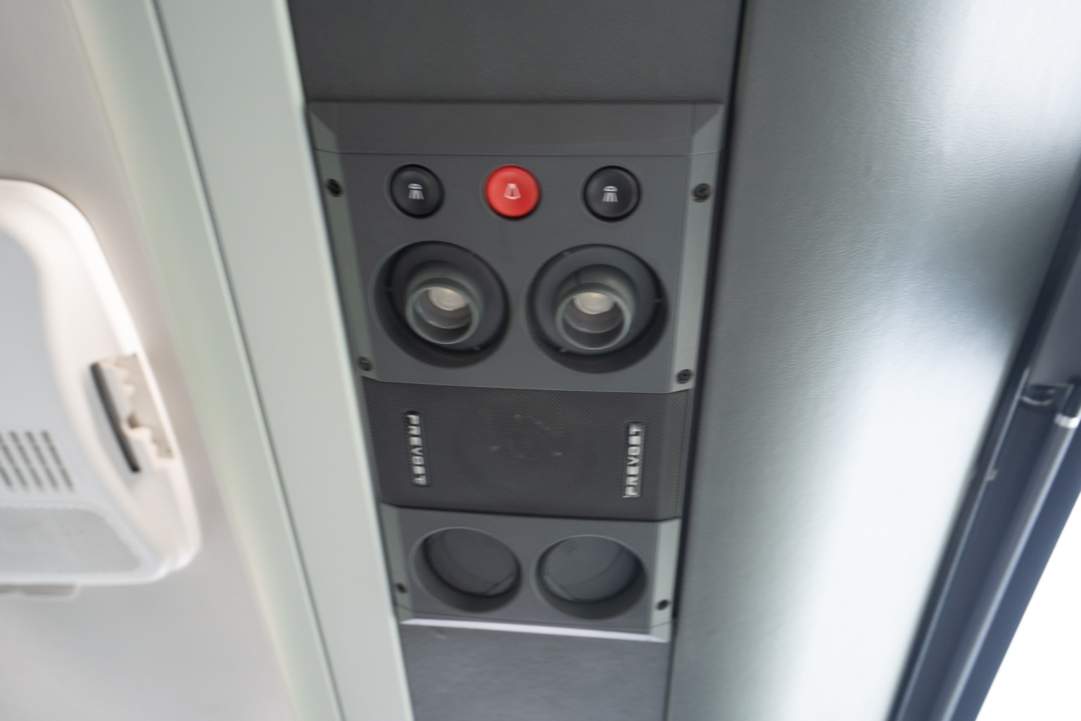 Below the solo seats, near your feet, you’ll find charging ports mounted to the wall. For the sets of two seats, charging ports can be found between the seats by your legs.