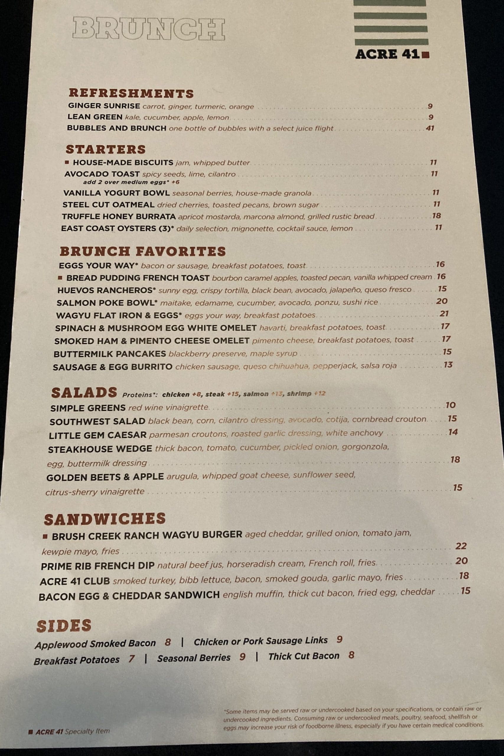 Aside from breakfast, Acre 41 is open for lunch and dinner service, as well. Lunch begins when breakfast ends, and goes until 2pm, and dinner service is available from 5–10pm daily.