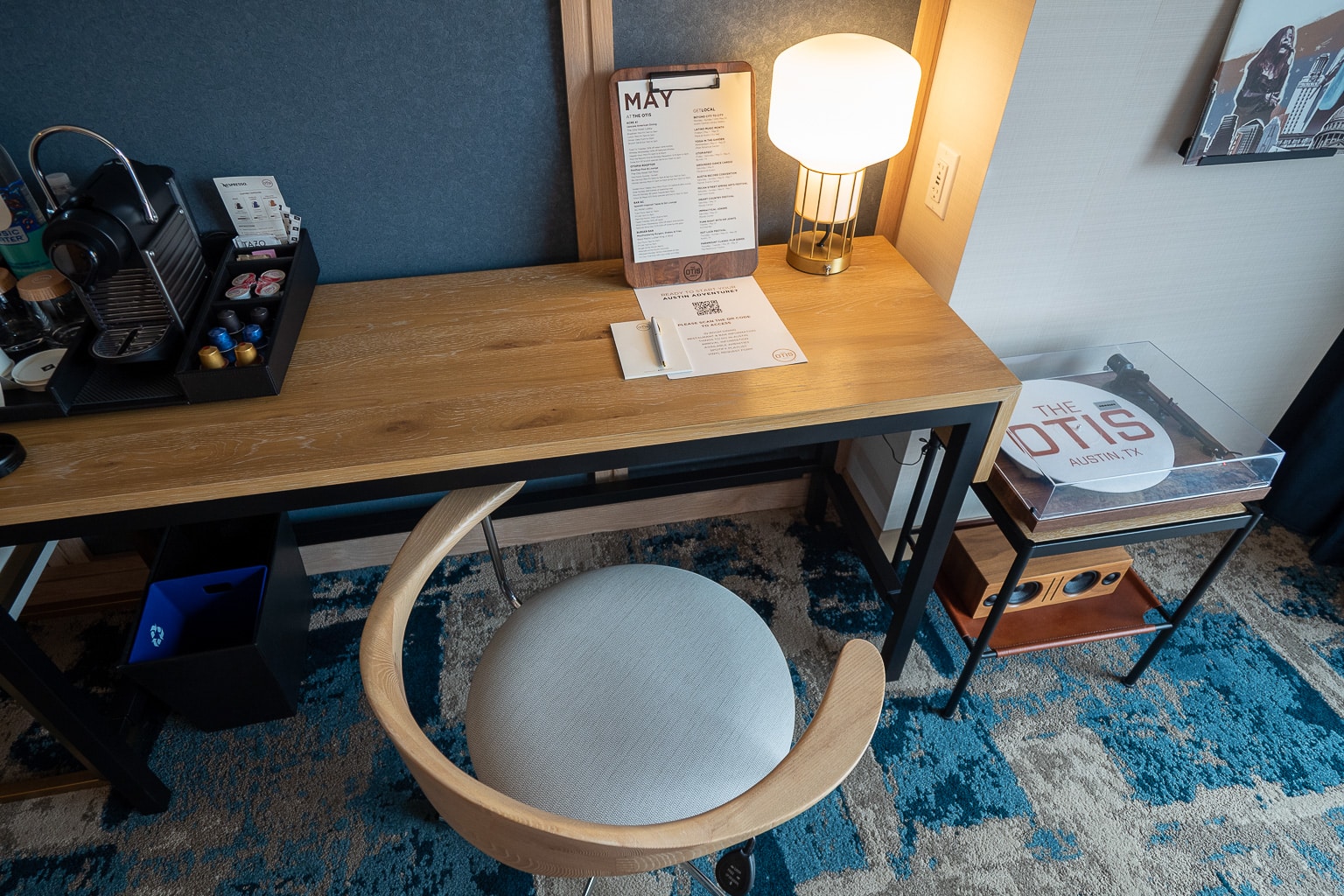 The record player has a handy Bluetooth switch, which you can use to stream the hotel’s curated Spotify playlists. Of the few I sampled, I found myself most compelled by Austin’s up-and-coming local artists.