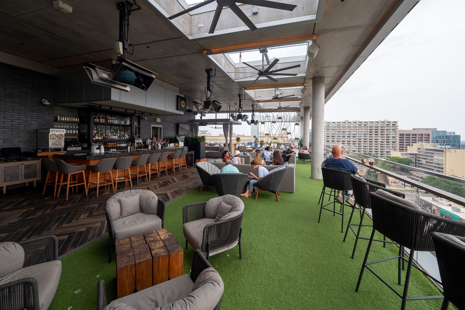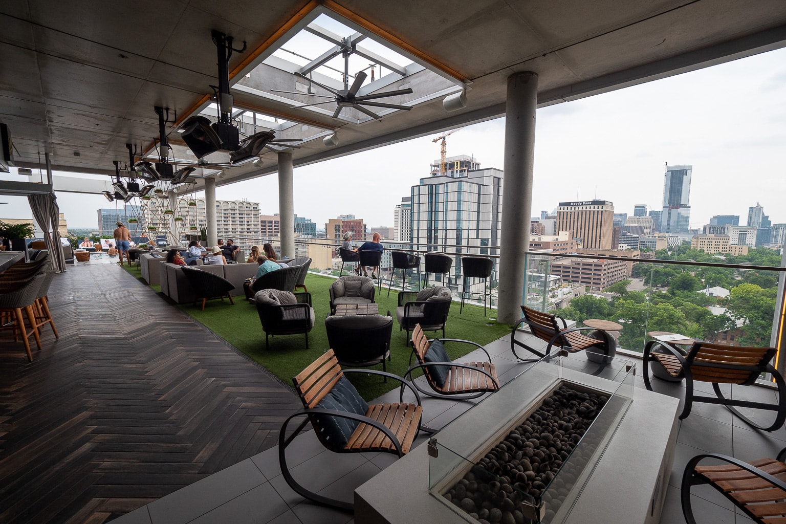 The Otis Hotel Austin, Autograph Collection has a fun rooftop bar and pool atop the hotel on the 11th floor, called Otopia Rooftop Lounge. The space is open from 5–11pm on most days, and until midnight on Fridays and Saturdays.