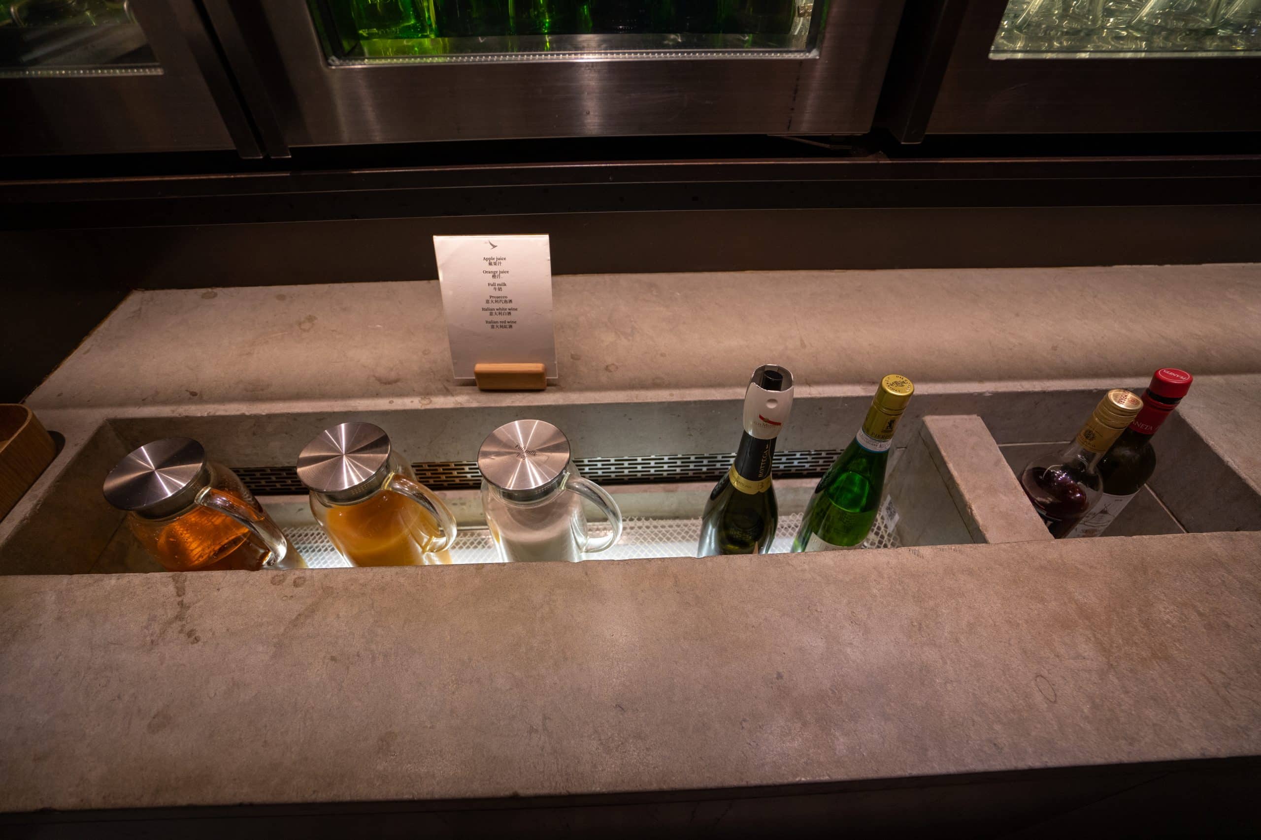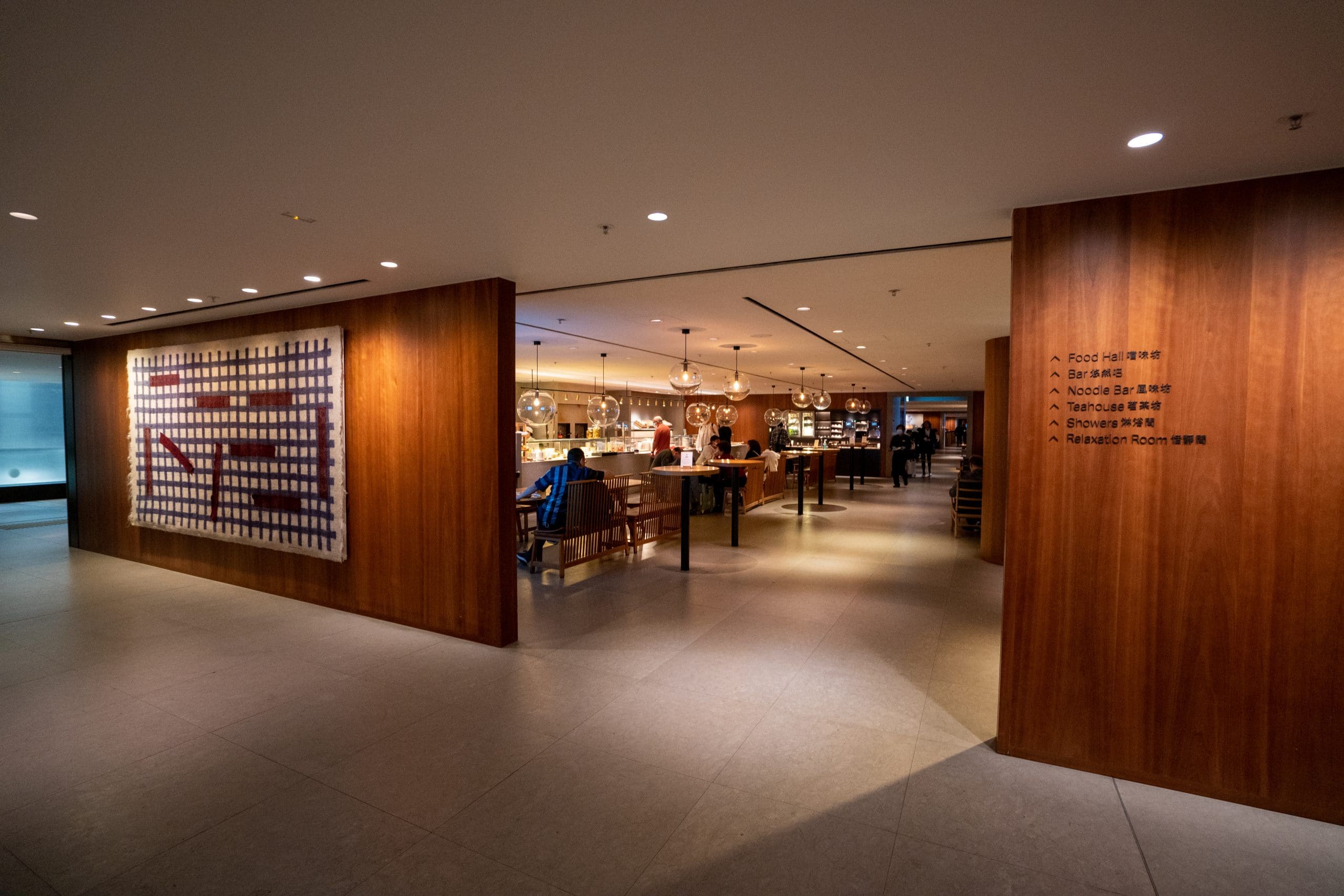 The lounge is accessible by passengers who hold Cathay Pacific or Oneworld business class tickets, with no guest allowance.