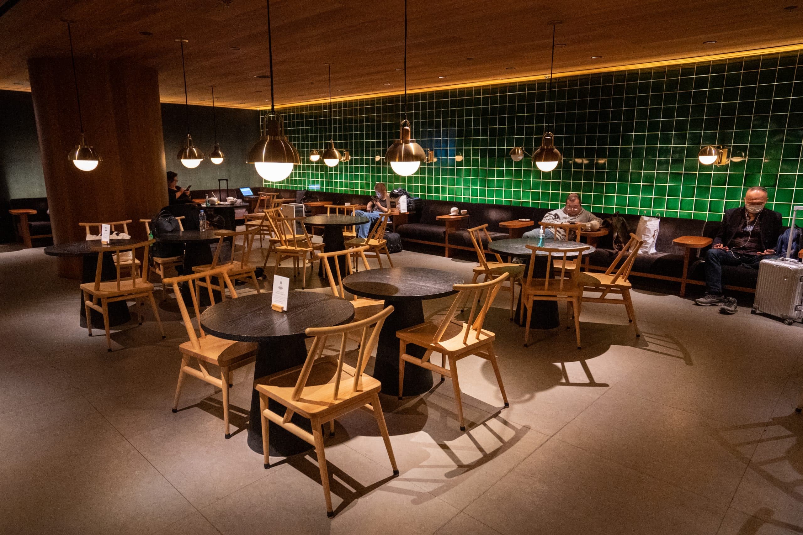The lounge was designed to reflect the city of Hong Kong, and showcases a blend of modern and traditional elements with a warm ambience.