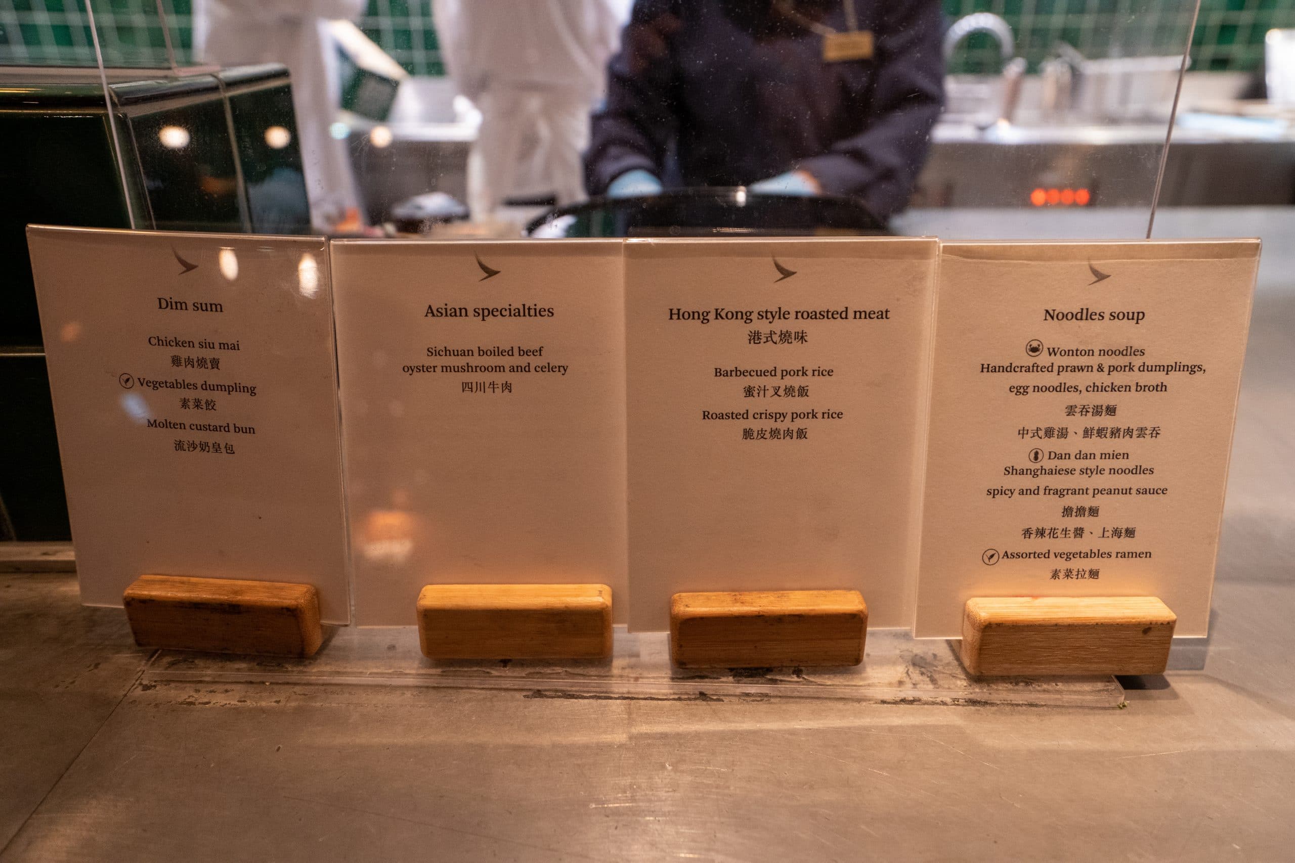However, no Cathay Pacific business lounge experience is complete without visiting the Noodle Bar. Here you’ll find Hong Kong- and Asian-inspired specialties such as sample dim sum, char siu buns, dumplings, and other regional specials.