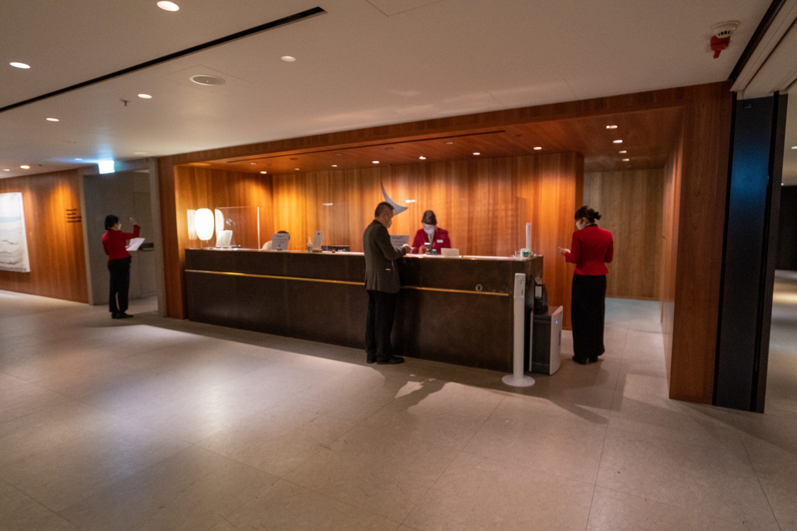 Upon descending the escalators and turning left, you’ll encounter a set of check-in desks that evoke the feeling of checking into a hotel rather than an airport lounge. Here, I handed my boarding pass to the associate, who promptly granted me access to the lounge.