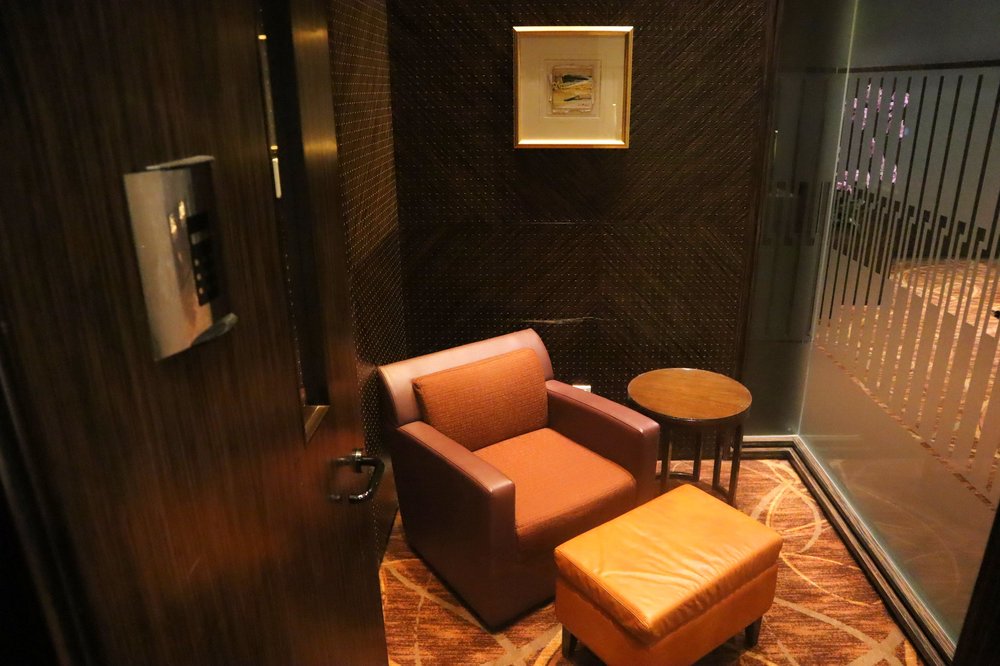 Meanwhile, the other room consists of a chair and ottoman, and seemed designed for guests to take a quick phone call, or to sit back and close their eyes for a while (but it’s not really suitable for getting any solid rest).