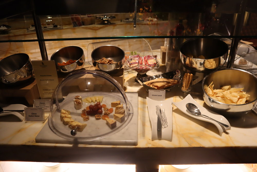 Turn the corner, and you’ll find yourself in the main seating area. The Private Room is a relatively small space that essentially consists of two rooms adjacent to each other: the seating area, and the dining area. As with the rest of Singapore’s lounges, the design palette definitely leans in the direction of classic rather than modern, and almost verges on feeling antiquated.