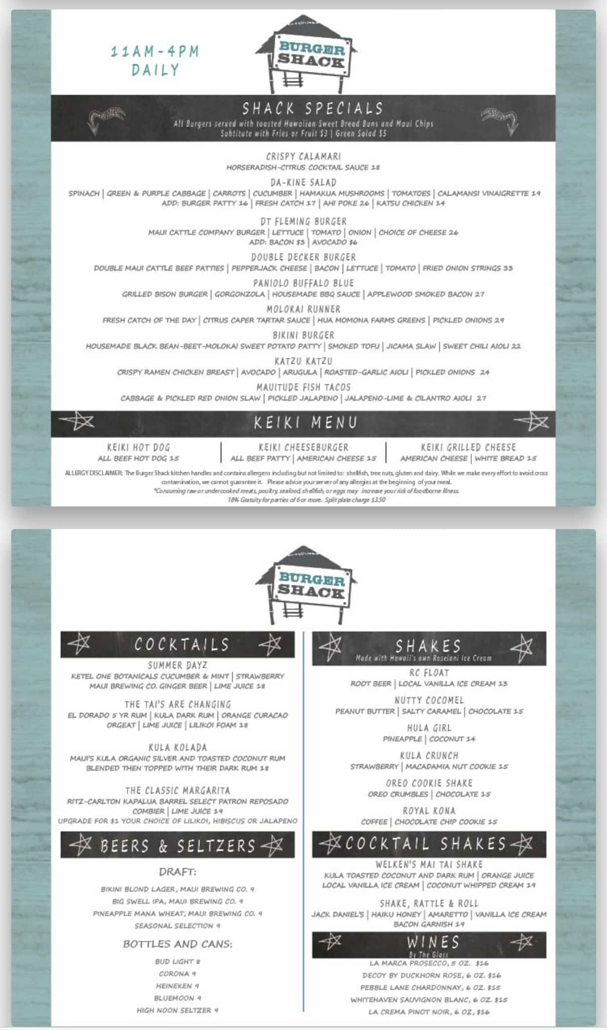 Down by the beach, you’ll find the Burger Shack, which has your typical fast-food offerings. The smoothies are amazing, but they will cost you US$13–15 each.