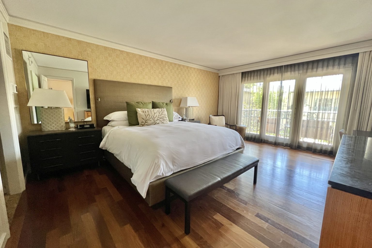 We stayed in the 900-square-foot One-Bedroom Residential Suite with a king bed, sofa bed, and garden view. Walking into the suite, it felt very homey and spacious, with dark wooden flooring and decorated in warm beige and wooden accents.