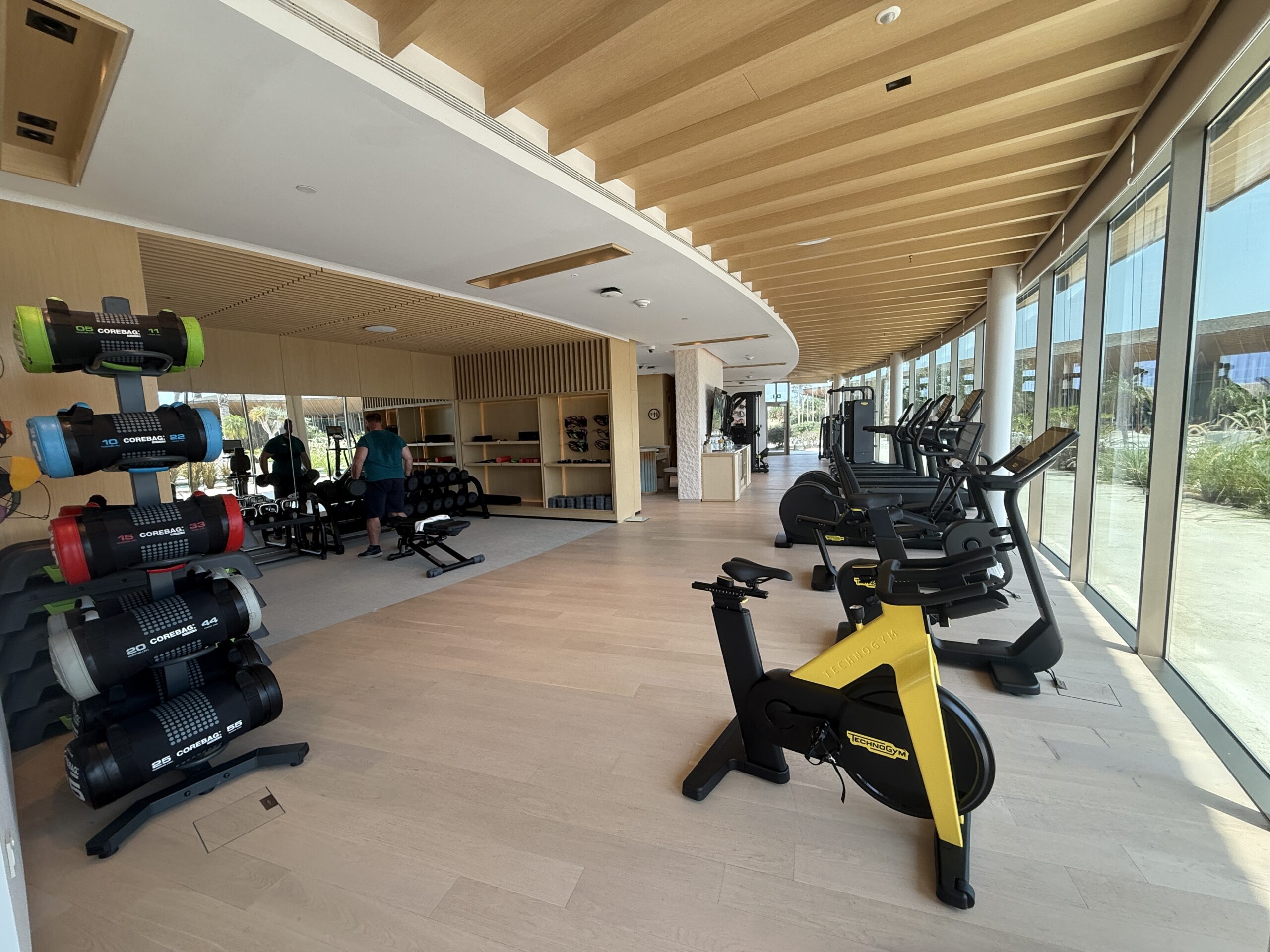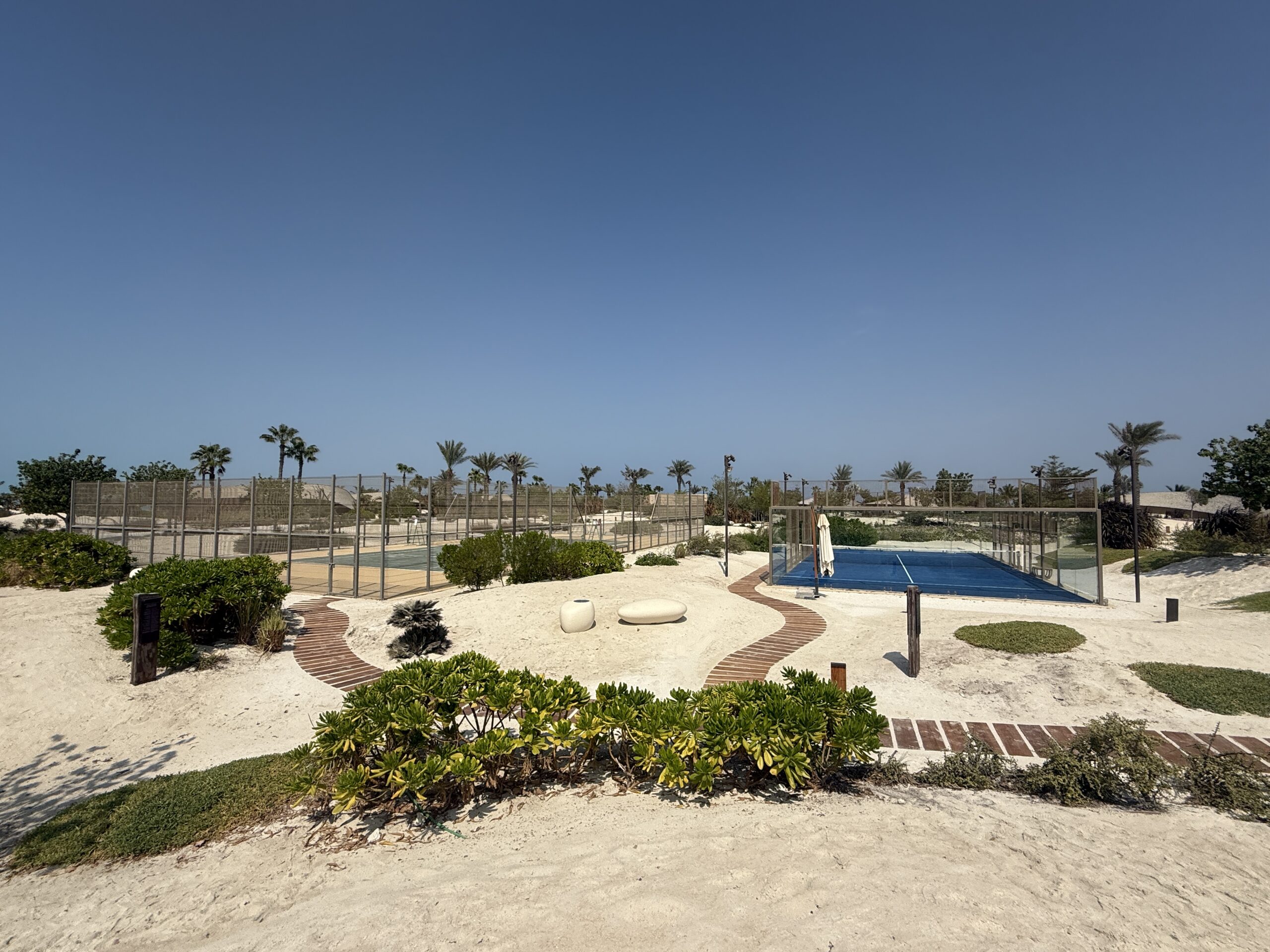 Our complimentary yoga session was exceptional, with an instructor who provided one of the most effective stretches we have experienced at any resort. Tennis and padel ball courts are also available and complimentary for guest use.