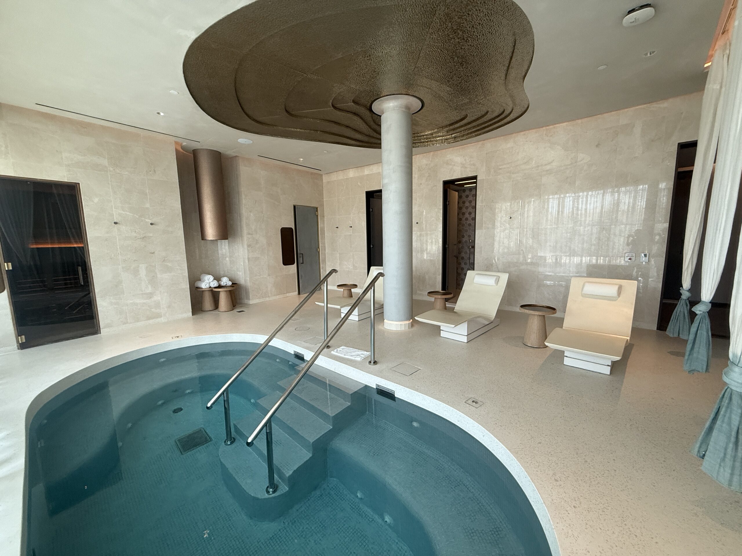 The full-service spa included a vitality pool, cold plunge, lap pool, yoga pavilion, and a well-equipped gym. Our complimentary yoga session was exceptional, with an instructor who provided one of the most effective stretches we have experienced at any resort. Tennis and padel courts are also available and complimentary for guest use.