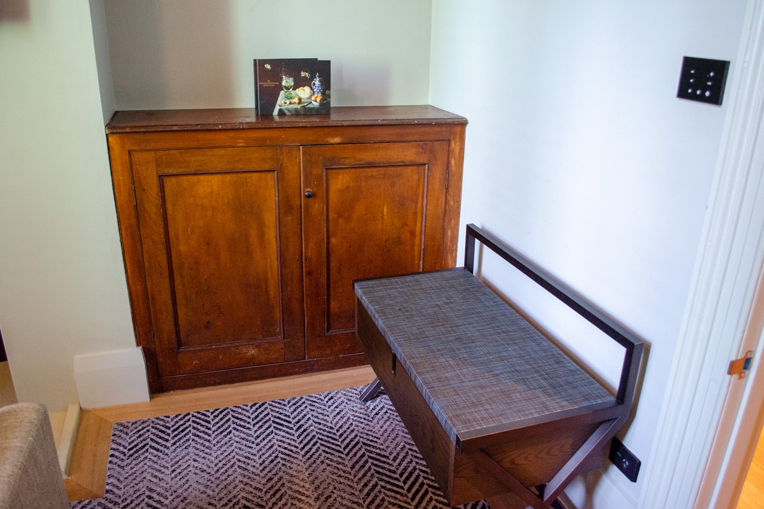 Along with a door that leads to nowhere in the living room, as well as a filled-in door and a chute in the passageway, the Heritage Suite has many preserved elements of the hotel’s past and left us guessing what stories the room could tell.