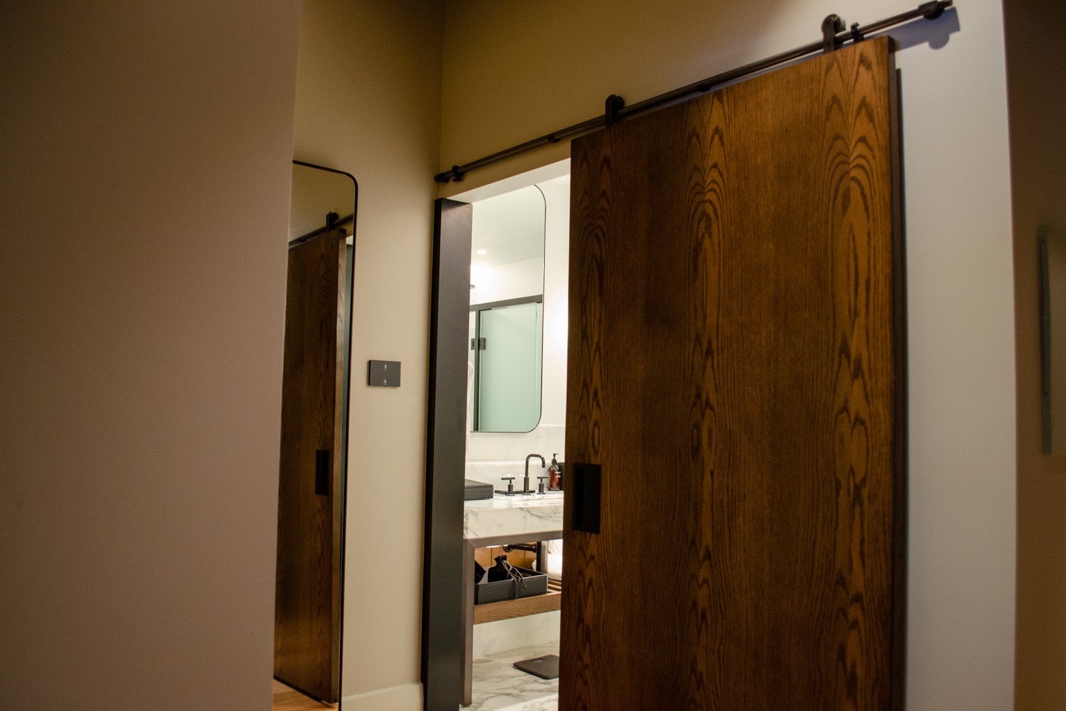 The bathroom has a lovely sliding wooden door, which is a feature that I much appreciated.