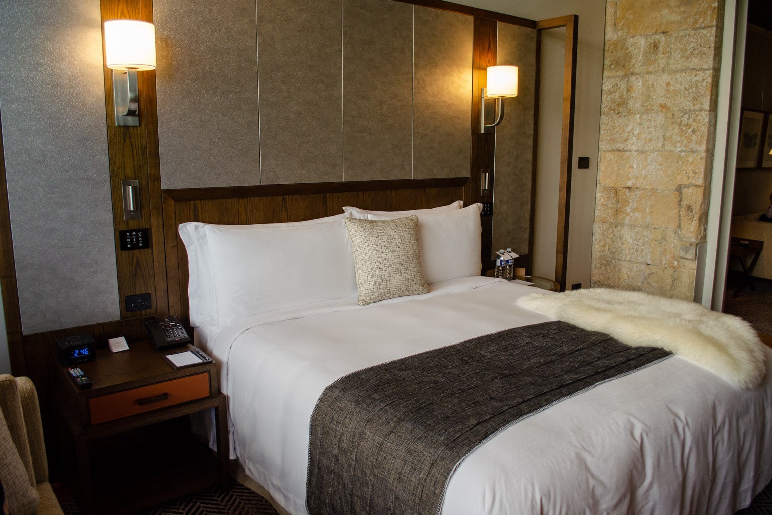 A king bed with a signature lambskin rug take up the majority of the bedroom. The bed was incredibly comfortable, and made for a very sound night’s sleep.