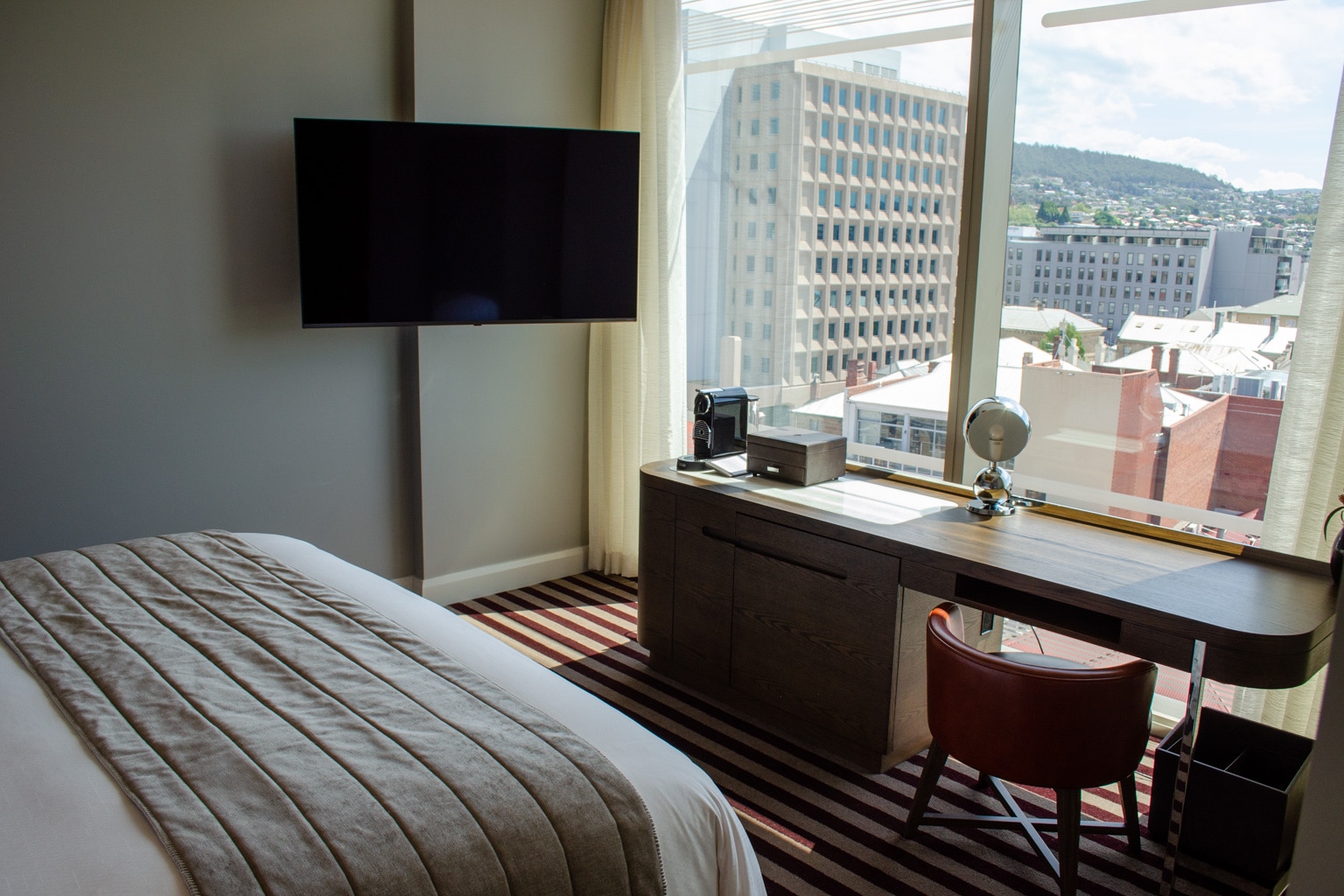 I also had the opportunity to take a peek at a base-level room at The Tasman, a Luxury Collection Hotel, Hobart. This particular room was located in the Art Deco building.