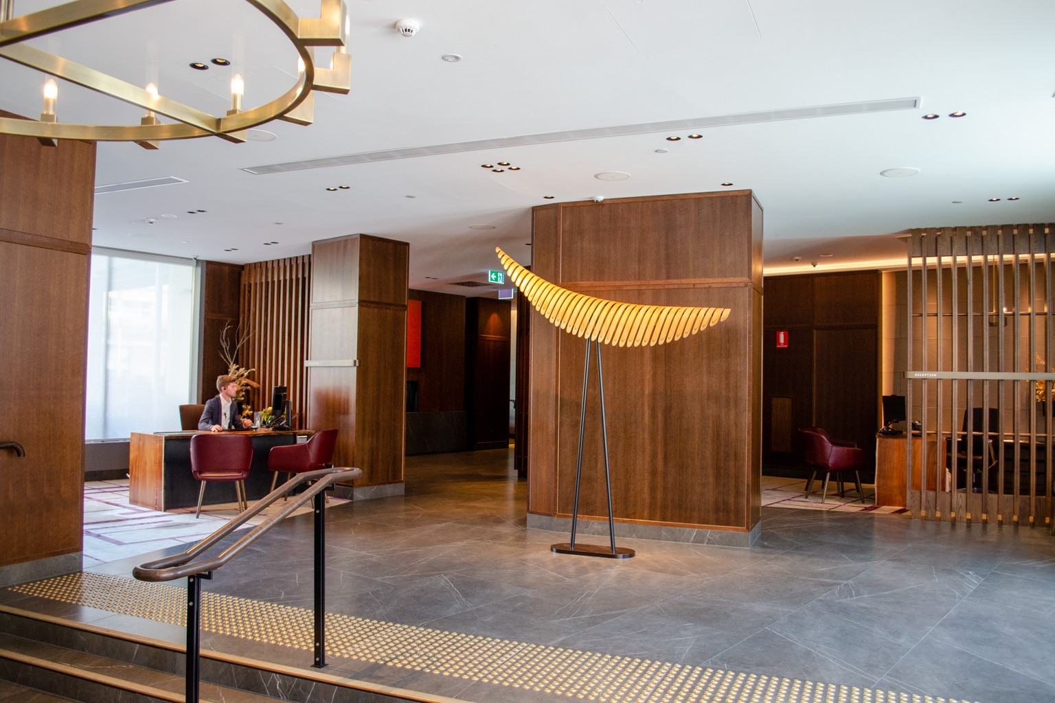 As soon as we entered the hotel, we were promptly greeted by the concierge staff, who offered to take our bags while we checked in. The lobby lounge at The Tasman Hobart is quite simple, with a few seats scattered about for guests.