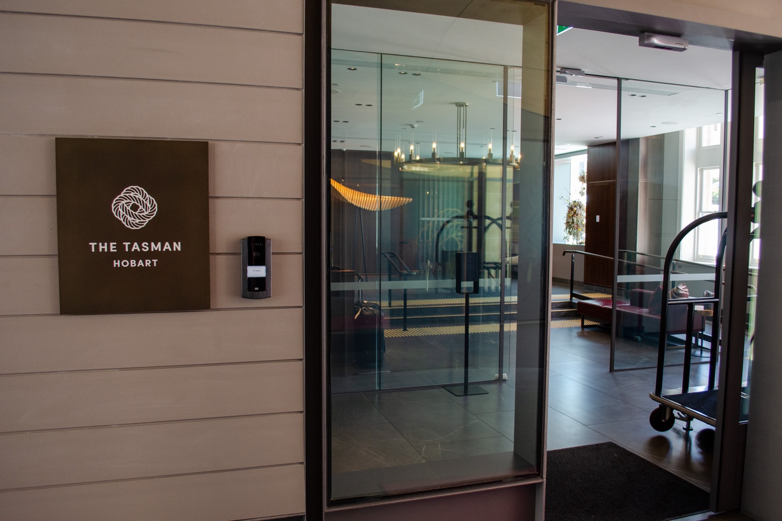 We arrived at The Tasman, a Luxury Collection Hotel, Hobart in the late morning after a series of flights from Canberra and Sydney. The hotel’s exterior is impossible to miss, with the pointed glass façade from the brand-new Pavilion building guiding you in.
