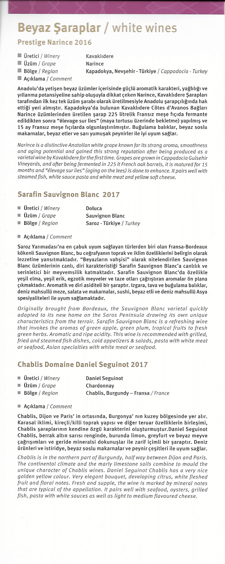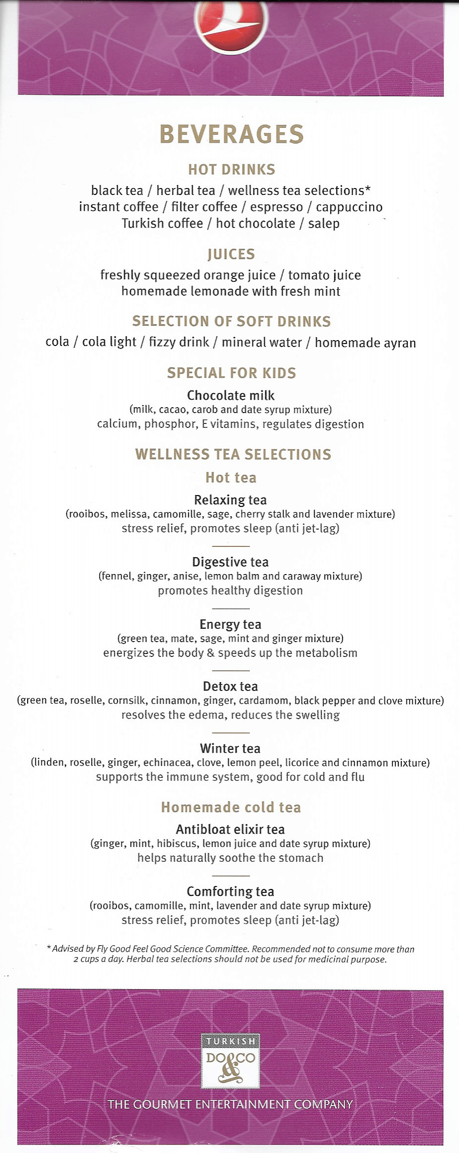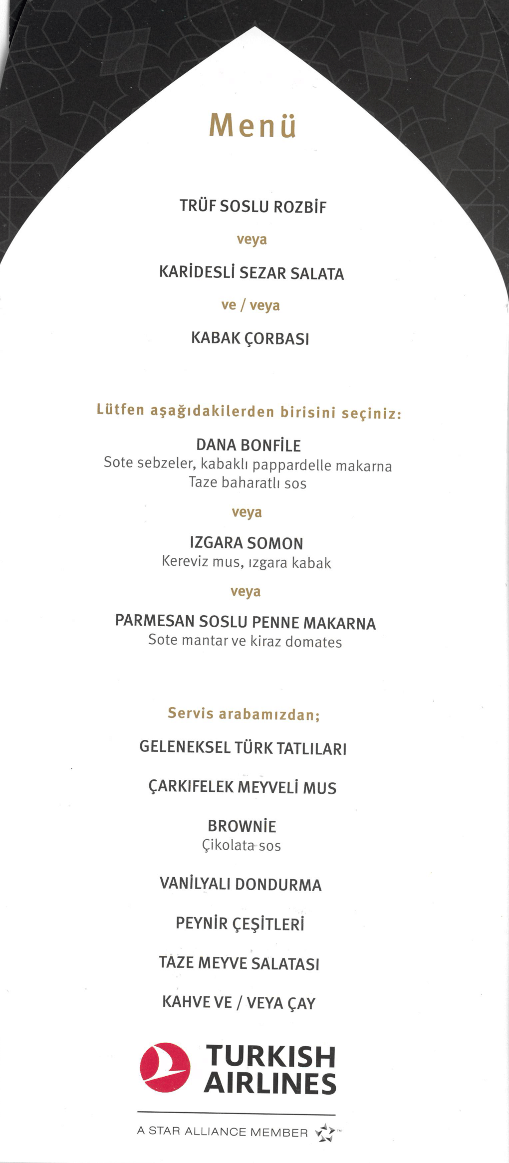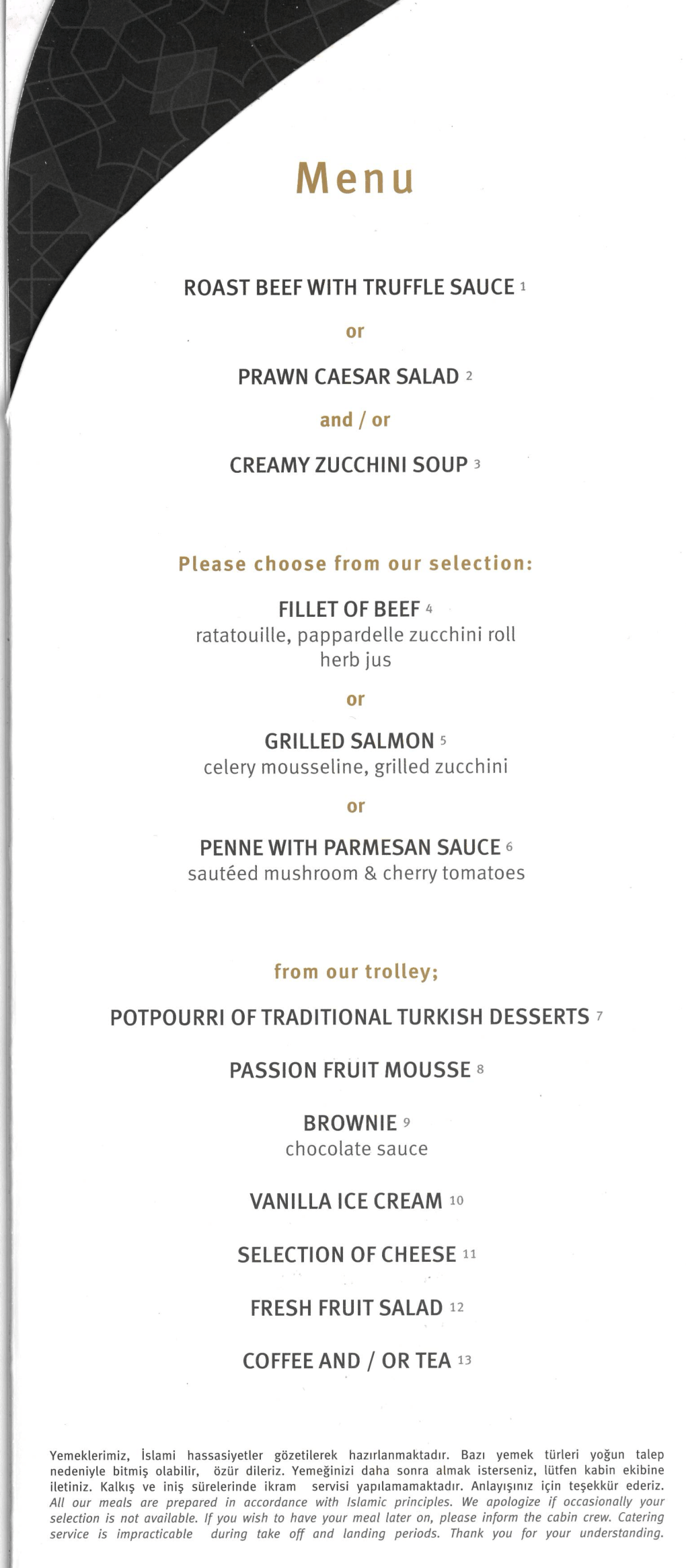 Turkish Airlines 787 business class – Menu