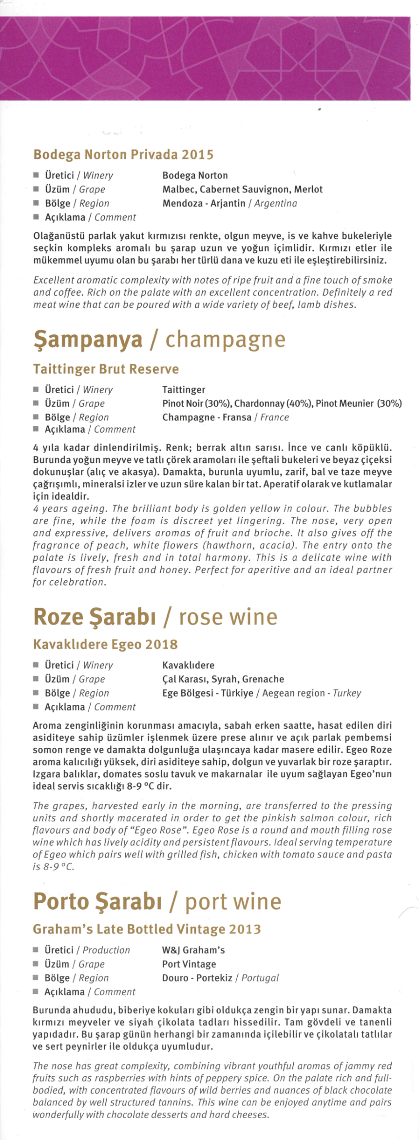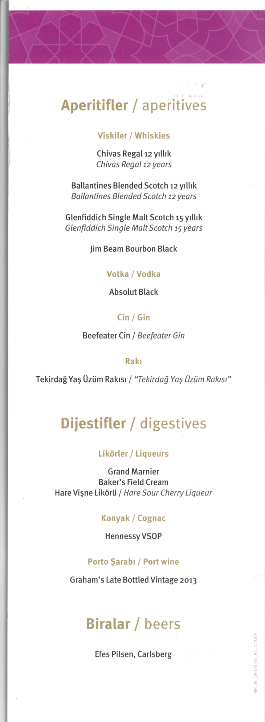 And here’s the drinks menu, which includes the wine list and the separate pamphlet for non-alcoholic beverages: