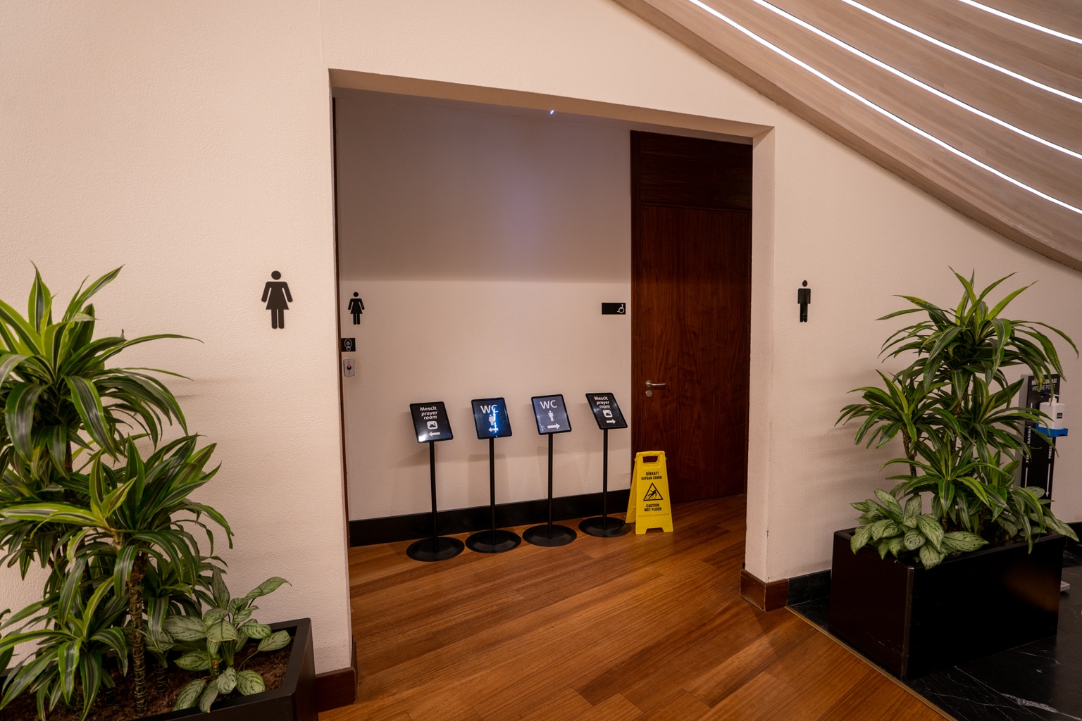 The lounge’s restrooms sits at the back of the lounge, where prayer rooms can also be found. Unfortunately, there are no showers available at this lounge.