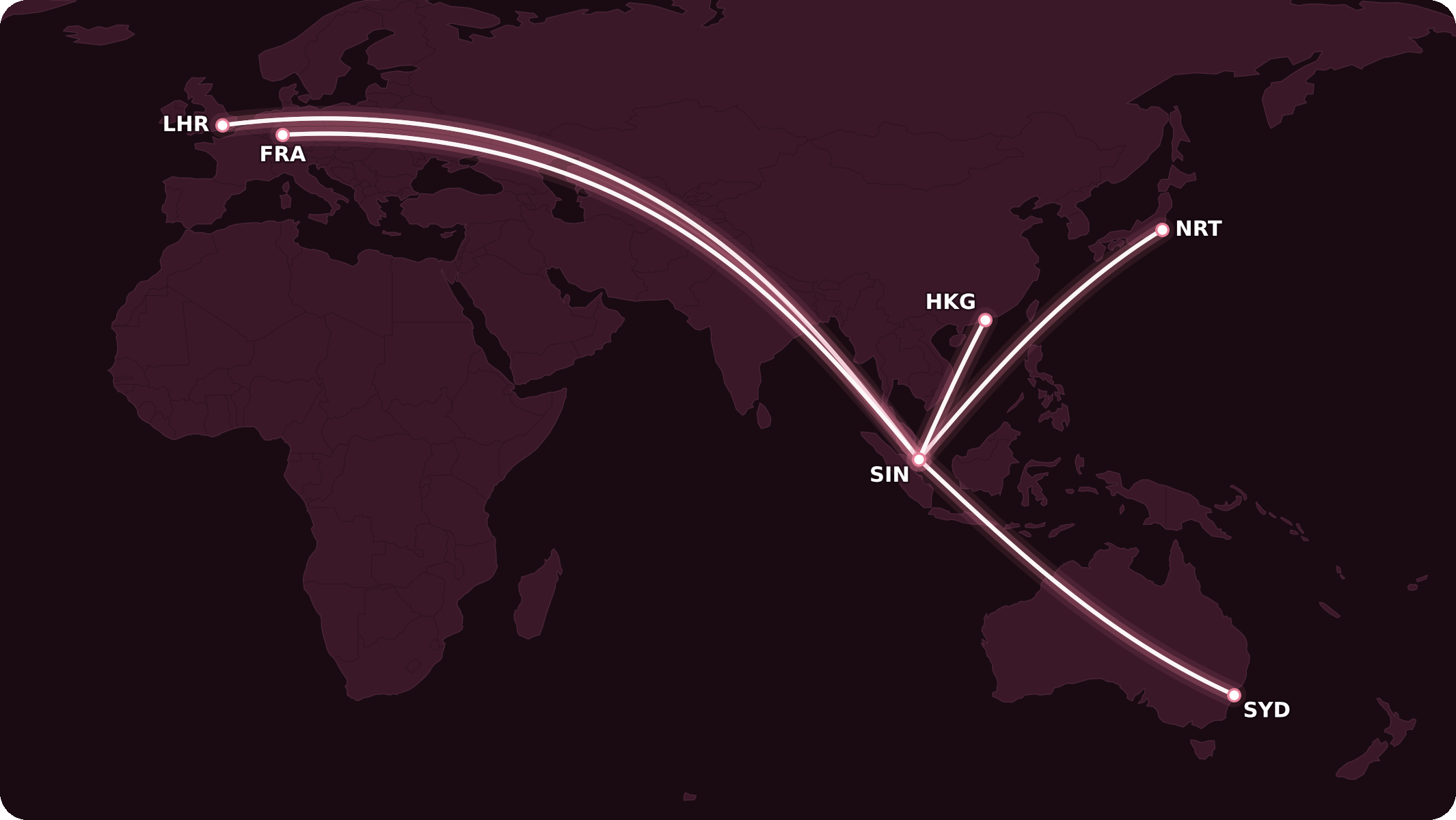 Singapore Airlines is currently offering Suites Class on the Airbus A380 on the following routes to and from Singapore: