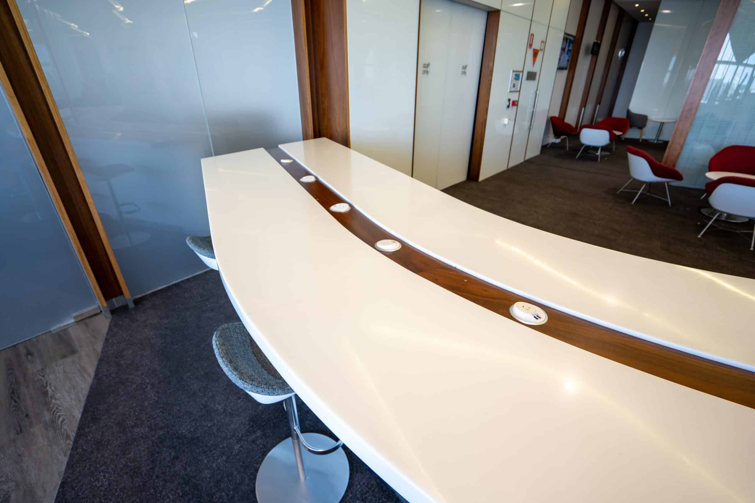 Lastly, there’s a workbench area, well-suited for those wanting to catch up on some work or stay productive before their flight. These well-equipped spaces offer power and data connections.