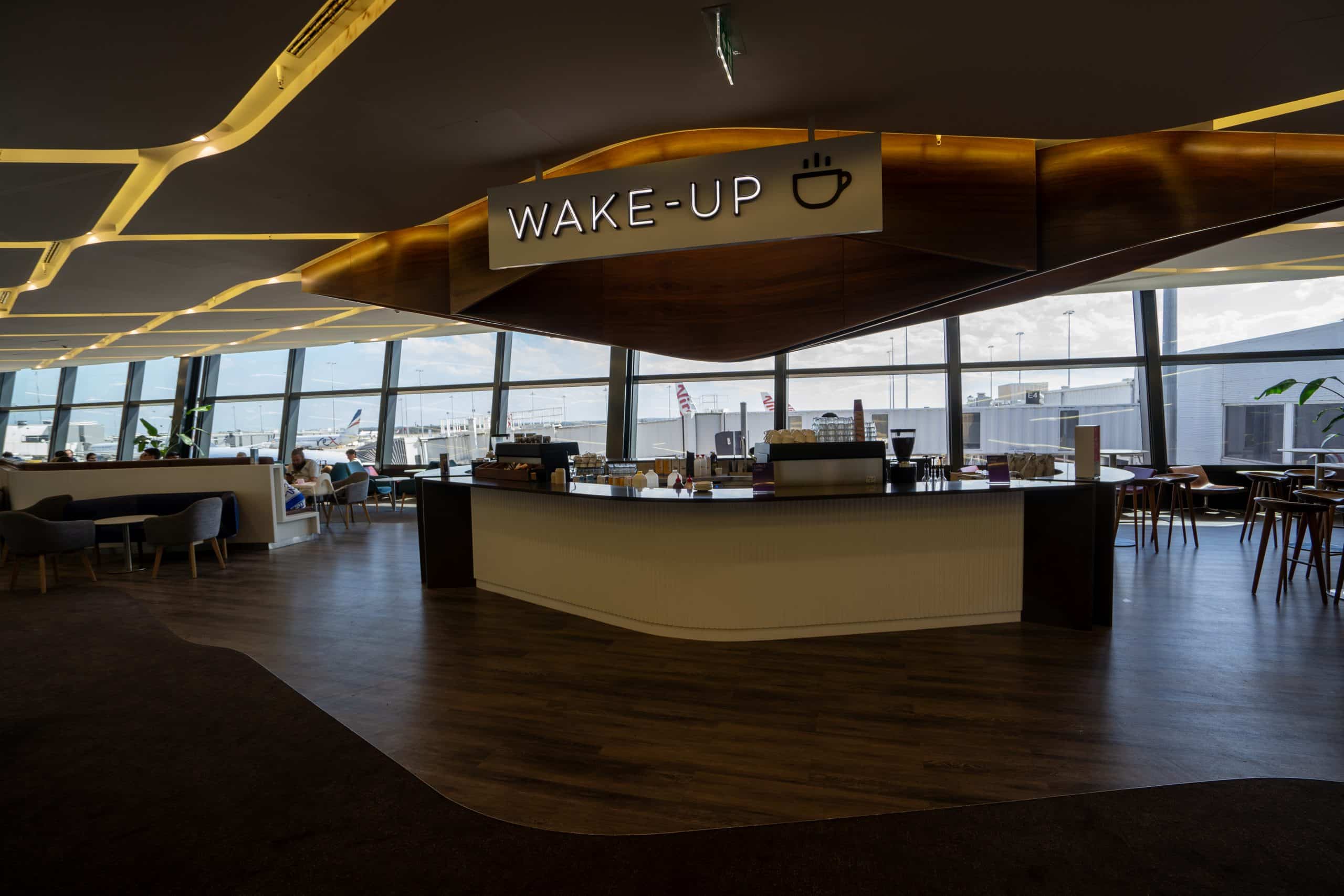 The morning spread lasts until 10:30am, after which the all-day options take over. Barista-made coffee is available from the lounge’s opening until its closing time, and the bar’s offerings are available from noon onwards.