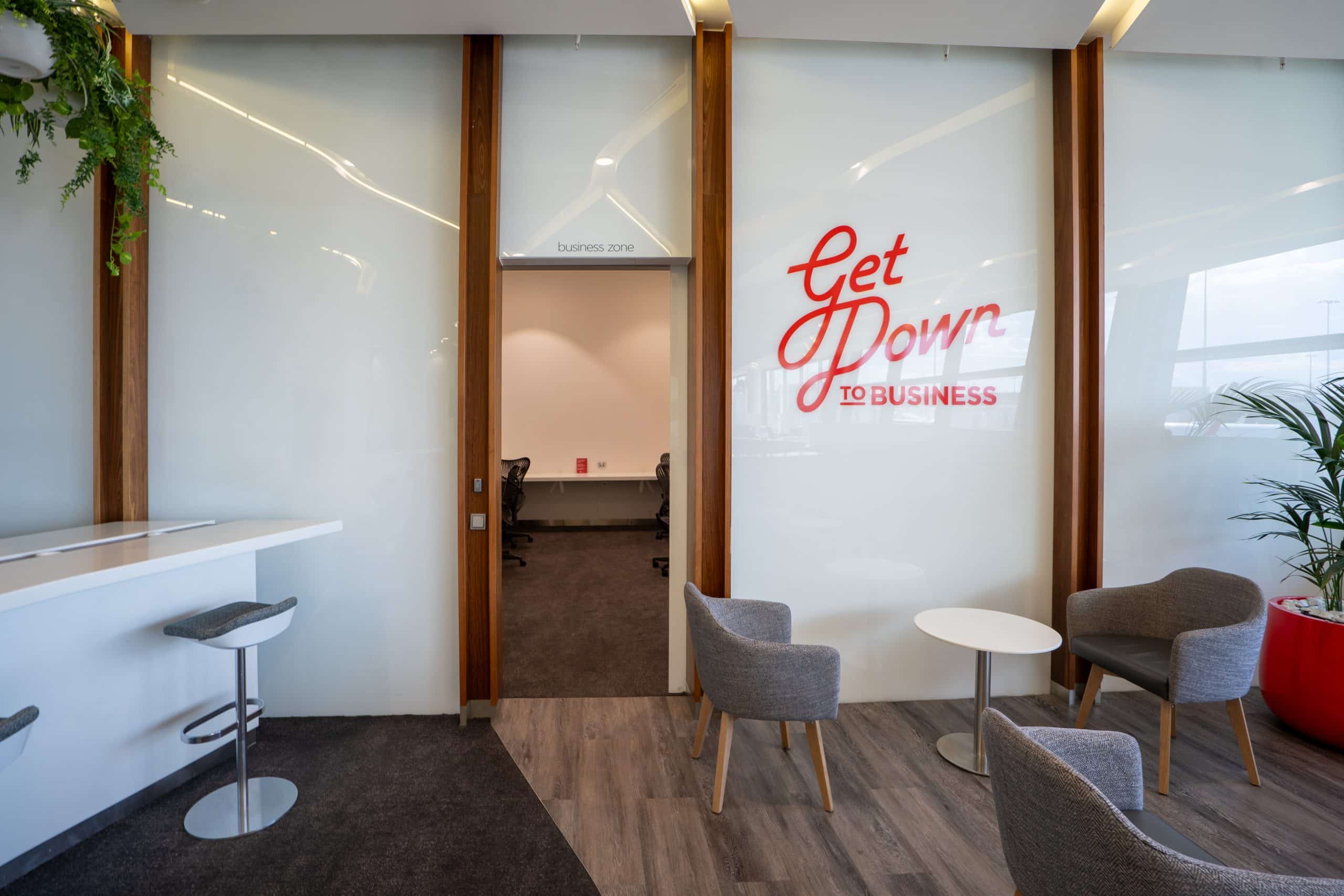 The Virgin Australia Lounge Melbourne is located in the domestic departures area in Terminal 3 of Melbourne Tullamarine Airport. To find it, you just need to head down the escalators after security and take a left turn.