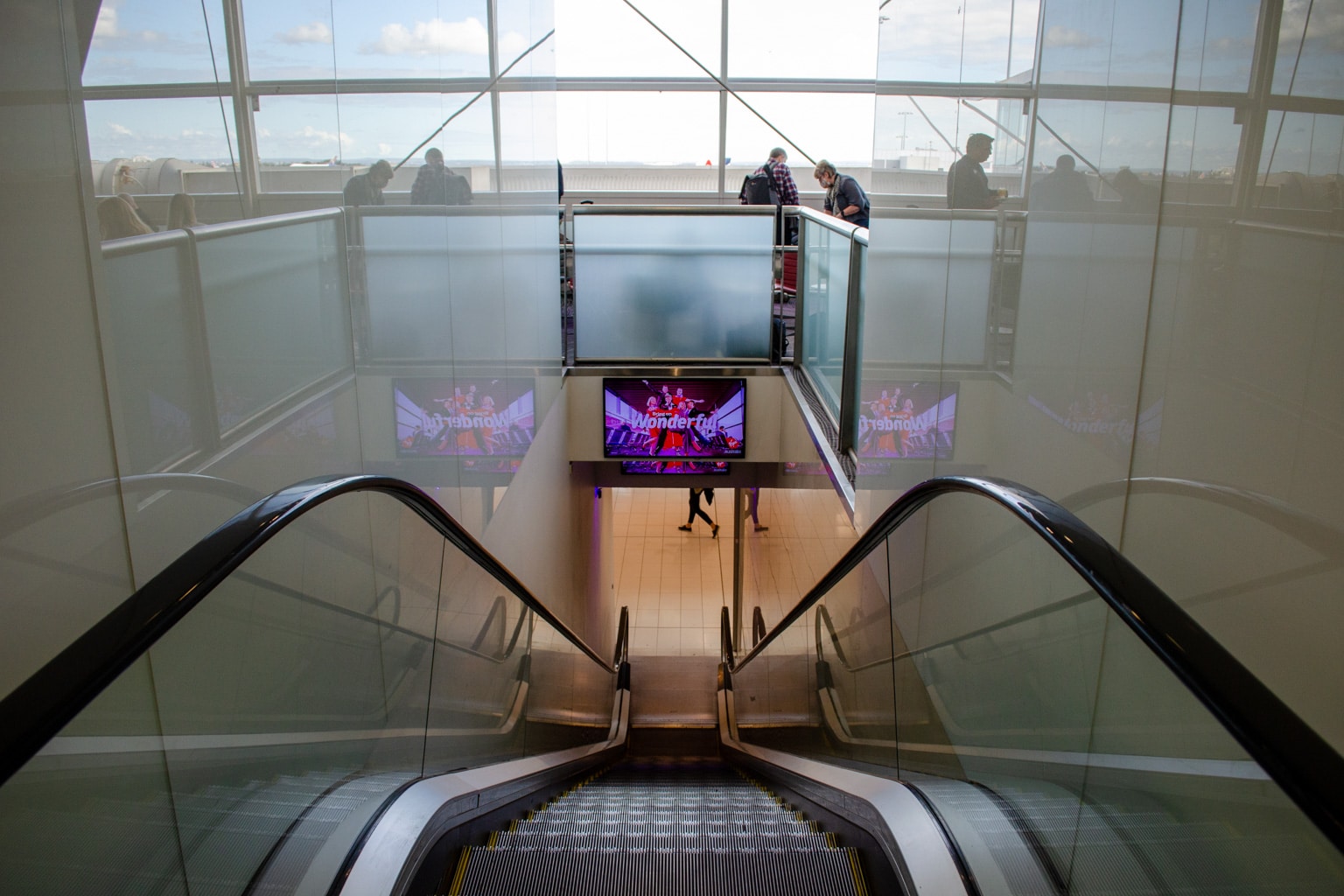 When it comes time to leave the lounge, there’s a separate escalator that leads right down to the concourse level.