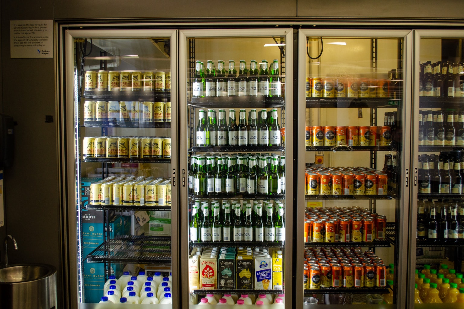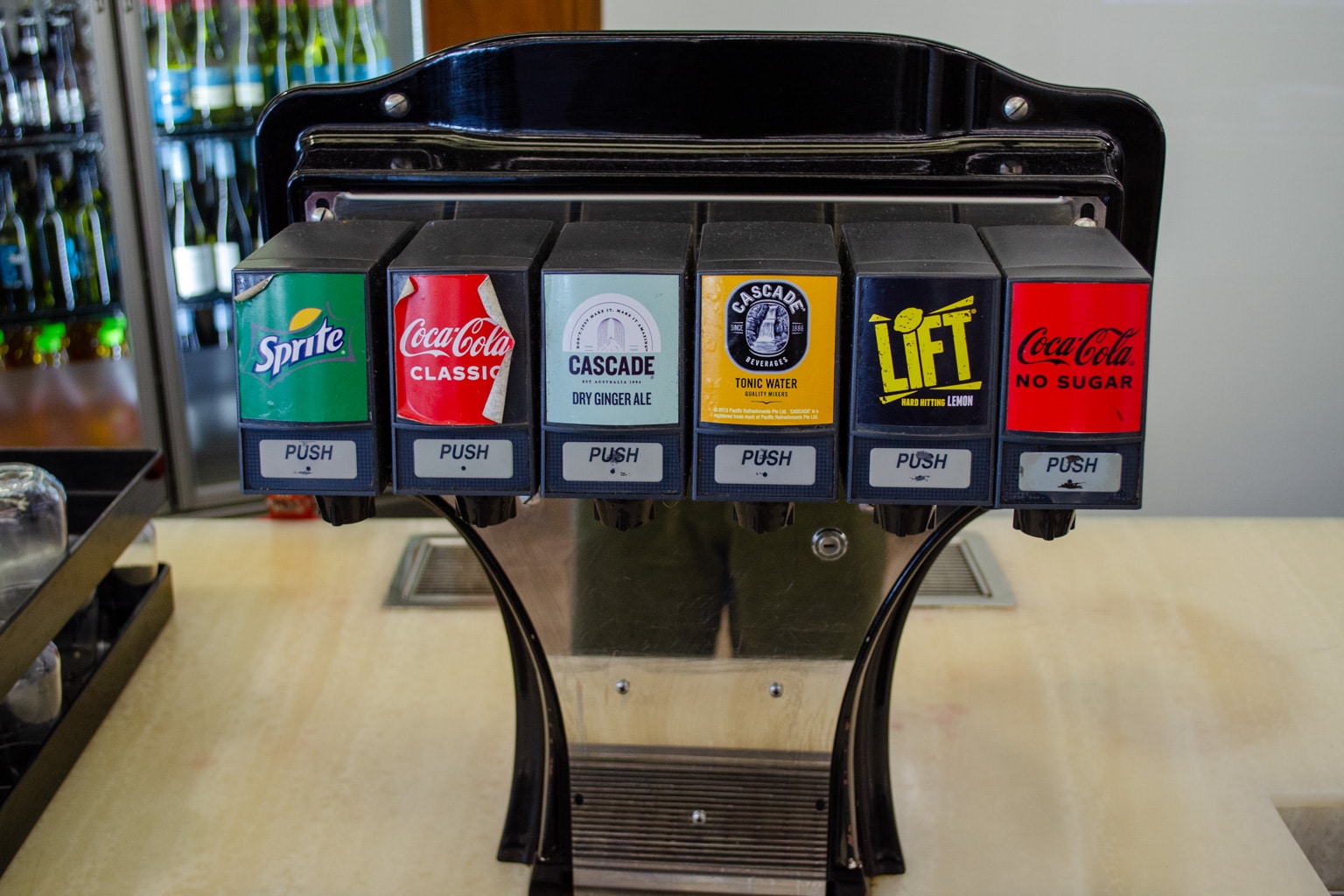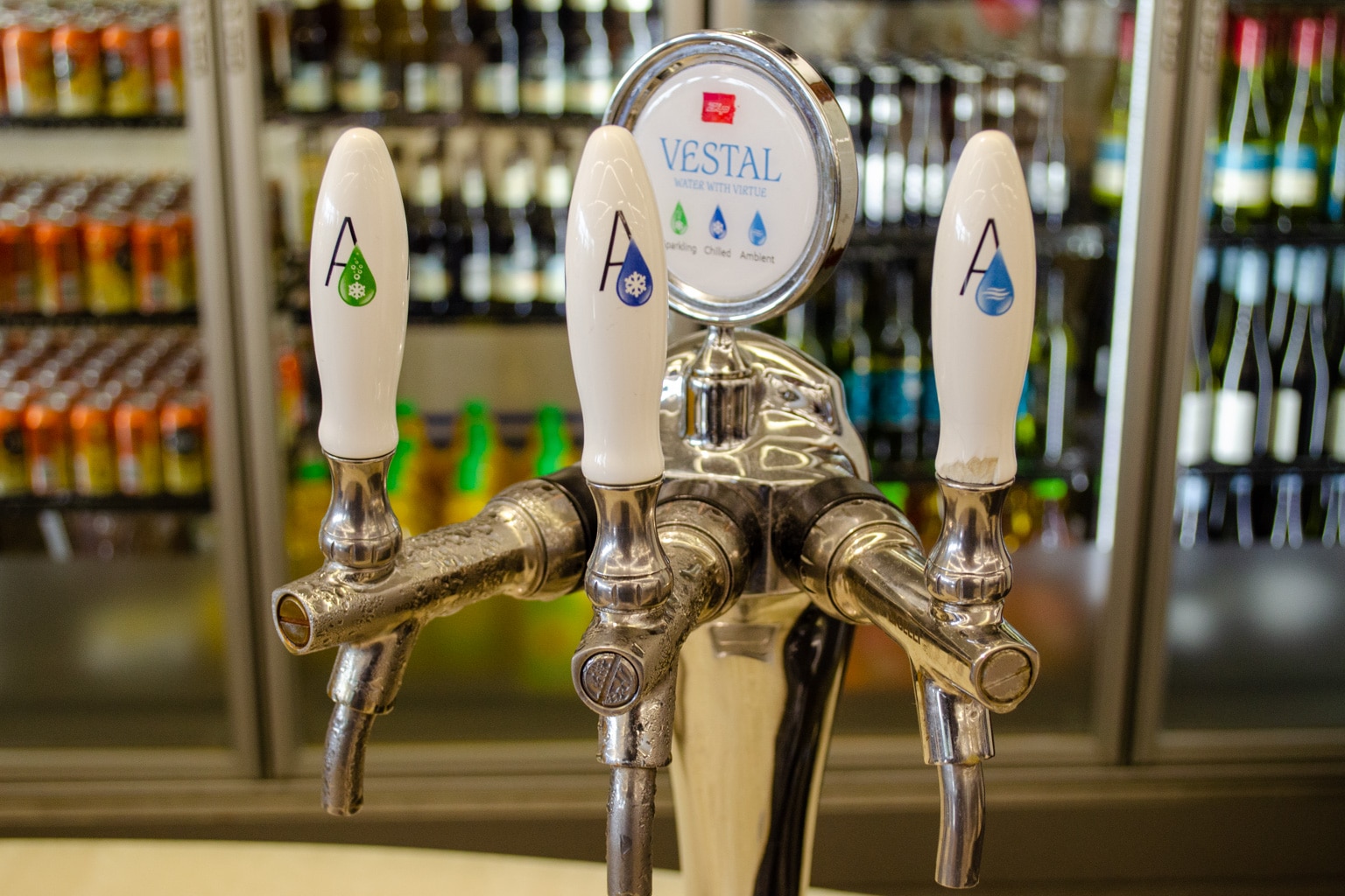Alcohol is served as of 12pm, and the lounge features a selection of craft beer, wine, and pre-mixed cocktails. There is also a selection of self-serve soft drinks available, as well as a tap with sparkling and still water.