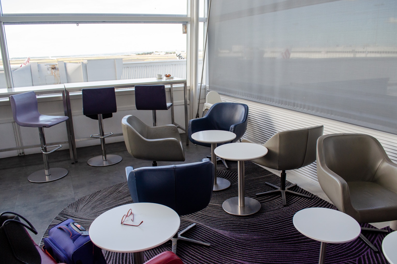 Heading through to the next corner of the lounge, there are more pairs of seats along the interior wall and the windows, as well as high-top seats closer to the window.