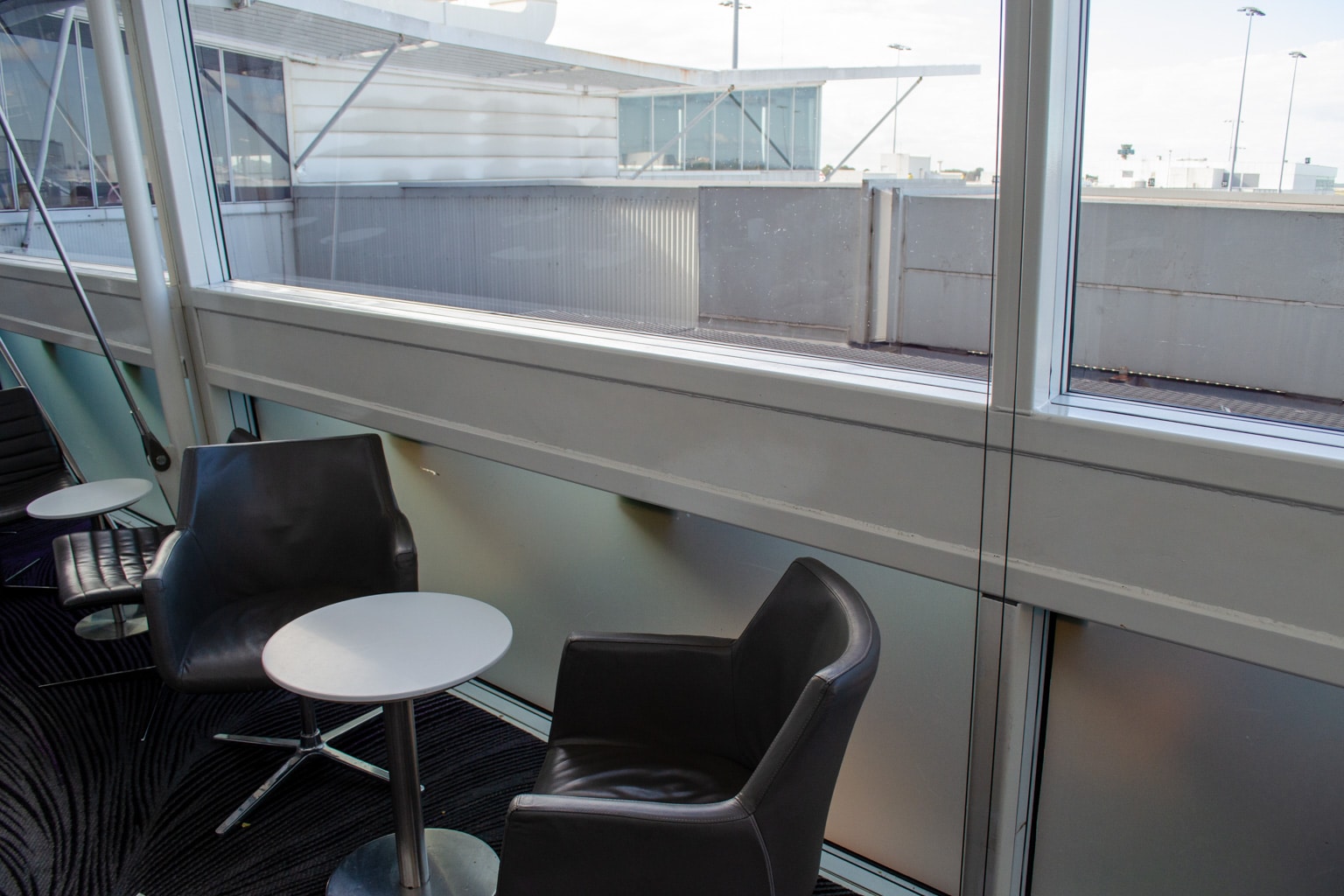 In the back corner of the lounge, facing the drop-off area for Terminal 2, is a small seating area with work stations, armchairs, and high-top seats. It’s tucked well away from the rest of the lounge, and is a nice place to relax if you’re looking for some privacy.