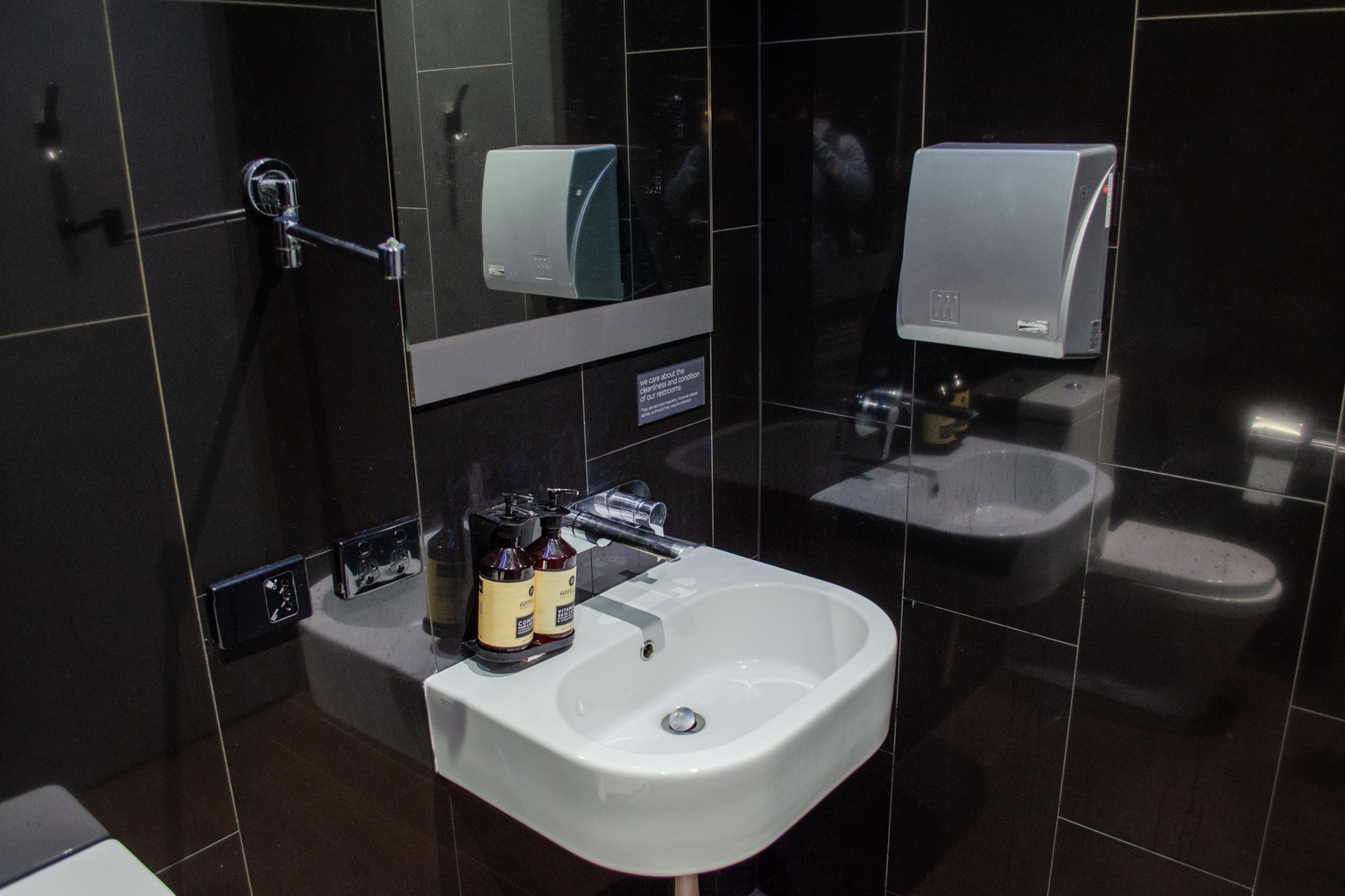 The restrooms were clean, which was surprising given how busy the lounge was.
