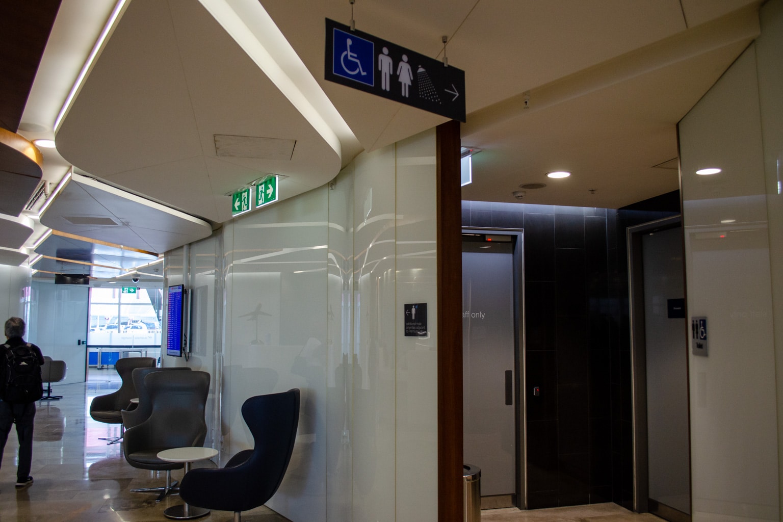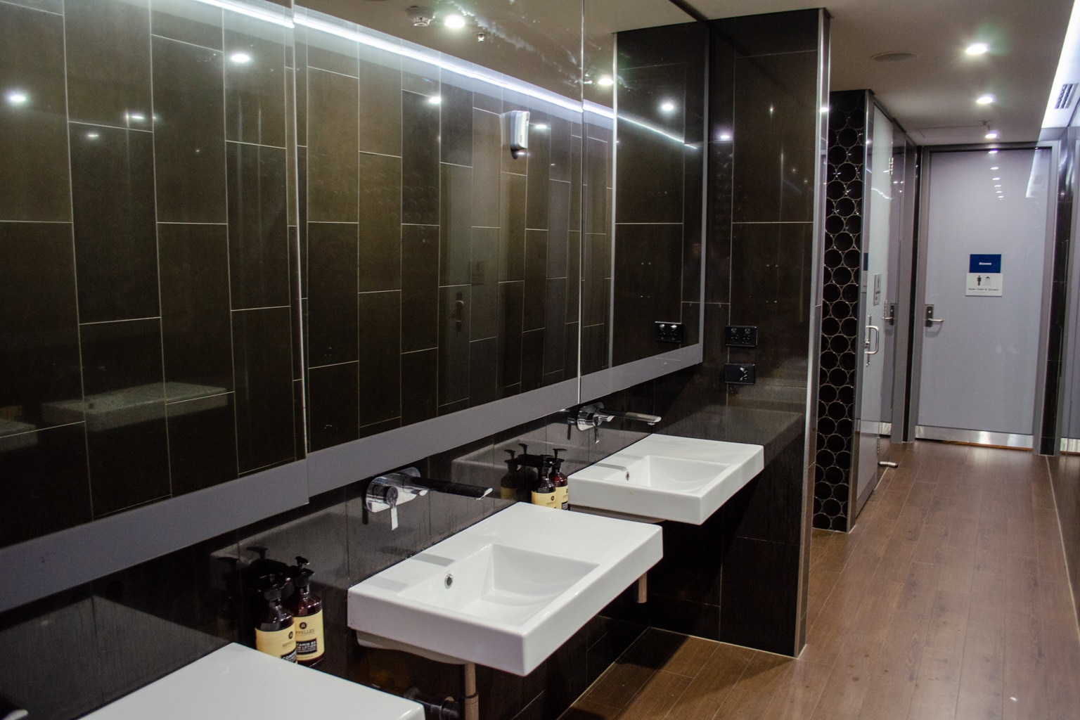 The Virgin Australia Lounge Sydney features showers in the main restrooms, as well as in separate shower suites.