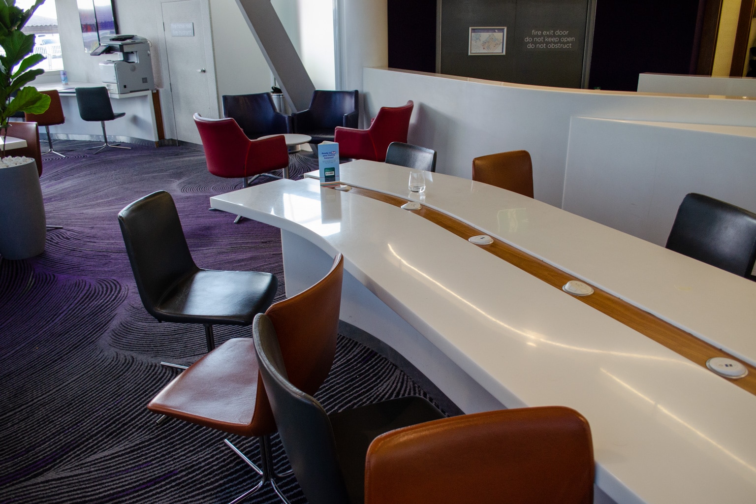 Just behind here is another corner of the lounge, where you’ll find an official business centre complete with armchairs, a printer, and a long white table with a number of seats.