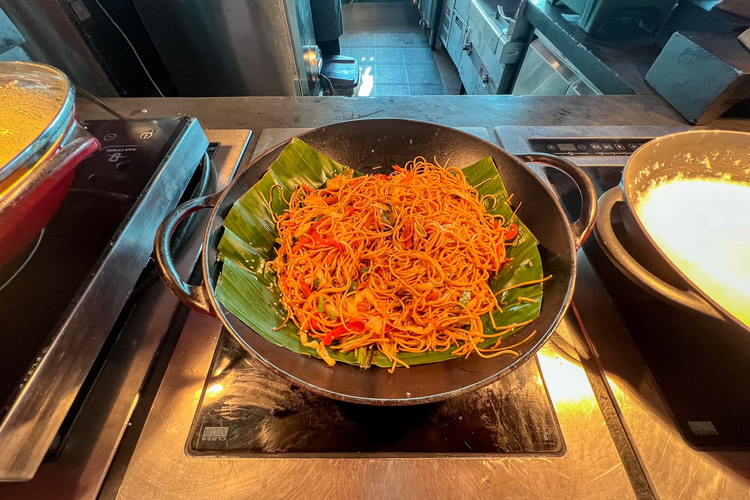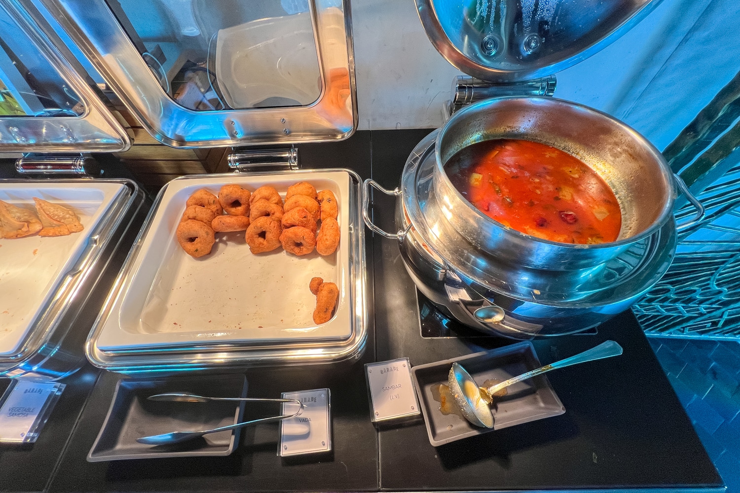 There was a good range of international breakfast items, such as sambar, vada, samosas, and upma, and a selection of Asian-inspired dishes, including fried noodles and dumplings.